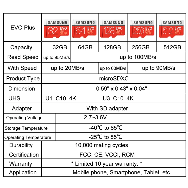 Оригинальная карта памяти SAMSUNG Micro SD карта 512 ГБ 256 ГБ 128 Гб 64 ГБ 32 ГБ Microsd SDXC SDHC класс EVO + C10 UHS TF Flash SD карты