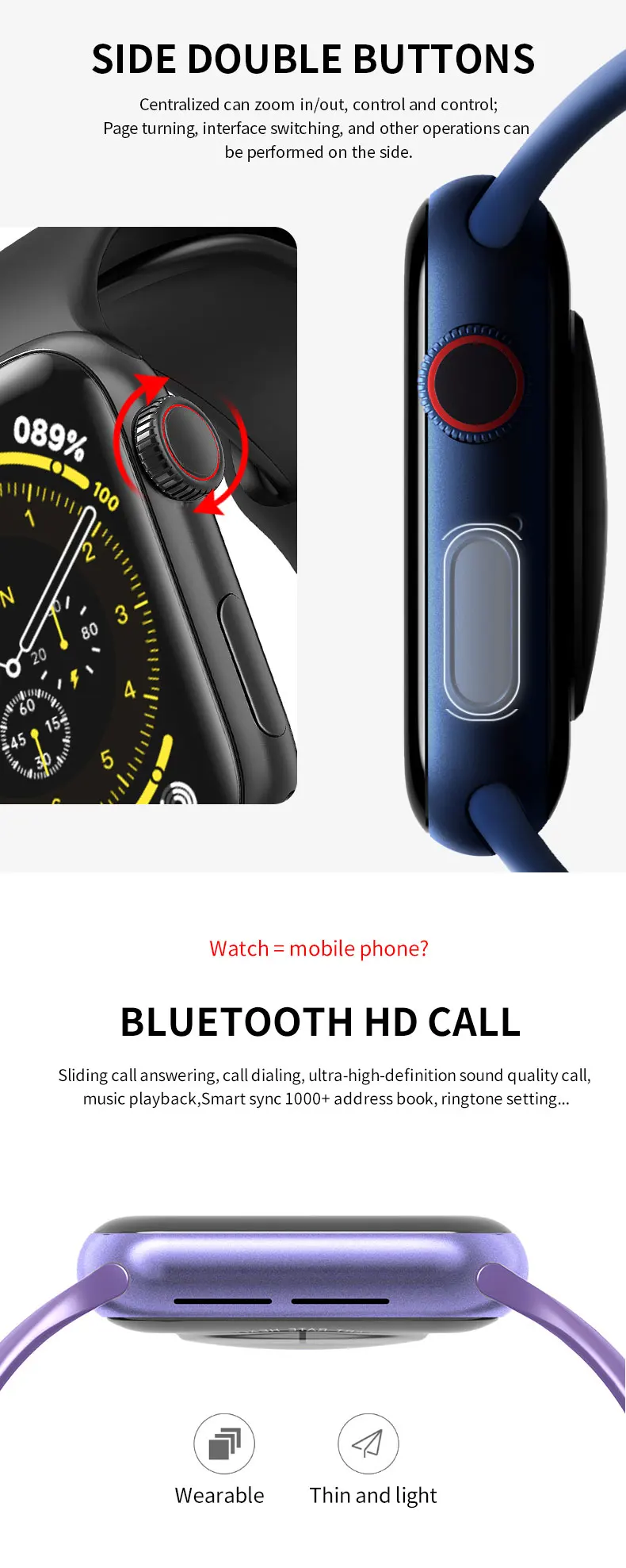 Смарт-часы IWO HW18 с пульсометром, 40 мм, с двумя кнопками