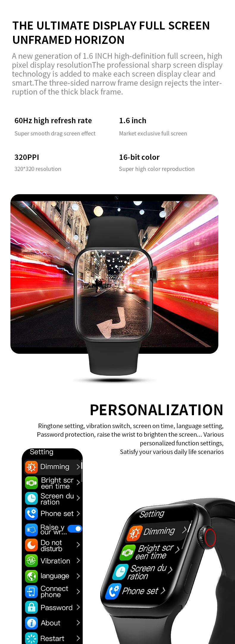 Основной дисплей: TFT 320*320, 1,6 дюймов