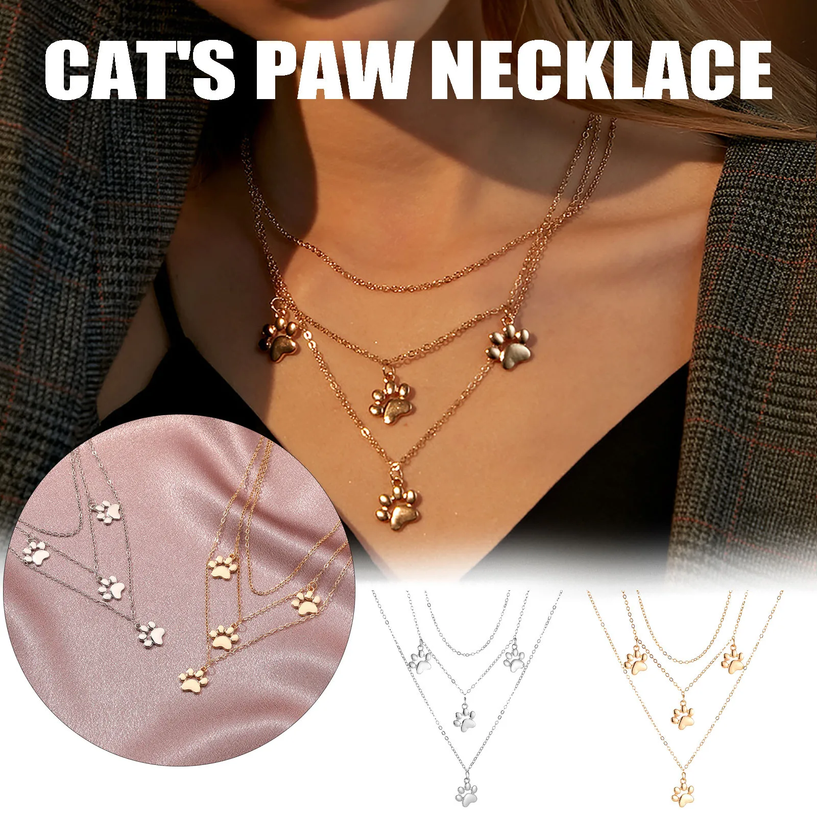 Новый дизайн многослойное ожерелье с милыми животными кошка лапа подвеска трехслойное ожерелье