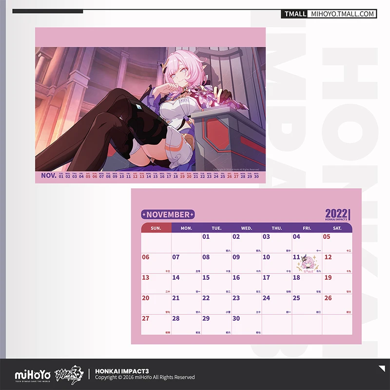 Игра Honkai Impact 3 Fu Hua Kiana Kaslana Seele Vollerei 2022 новый год акриловый Настольный календарь аниме ежедневник расписание подарок