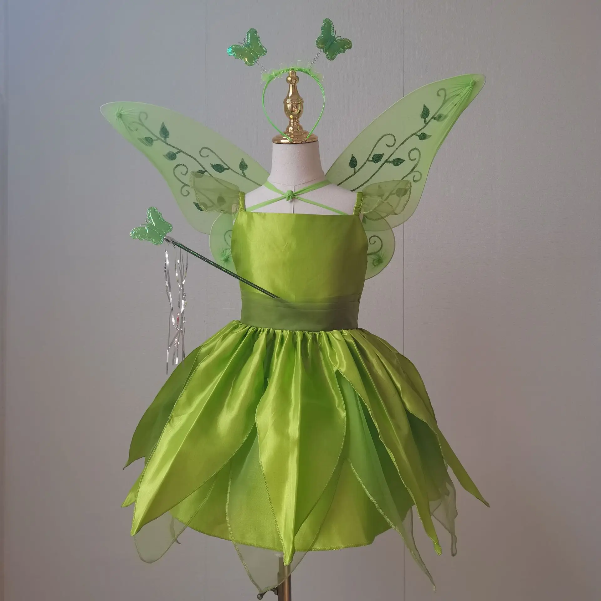 Рождественское фея Динь-Динь платье для девочек с зелеными цветами эльфом детский косплей принцесса бальное платье Хэллоуин маскарадные костюмы