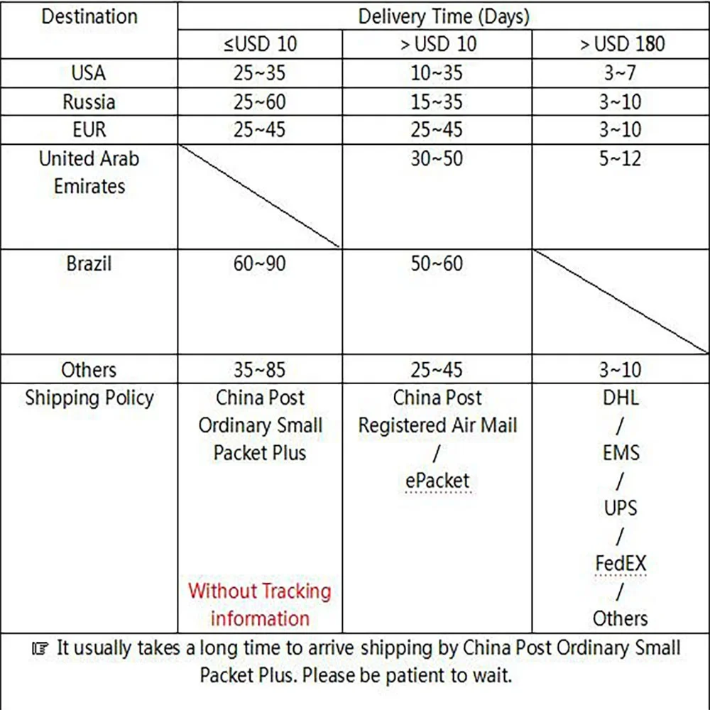 Добро пожаловать в наш магазин!Заказы более $130: обновление логистического режима для UPS, DHL, EMS,AlamiЗаказы свыше $15: способ доставки повышен до стандартного.