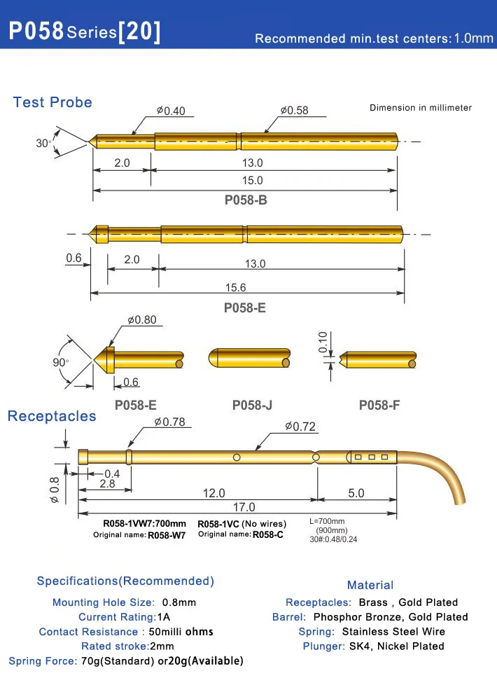100 шт. 1,3 мм фосфора Медь Весна Тесты зонд PL75-H2 Никель покрыти...