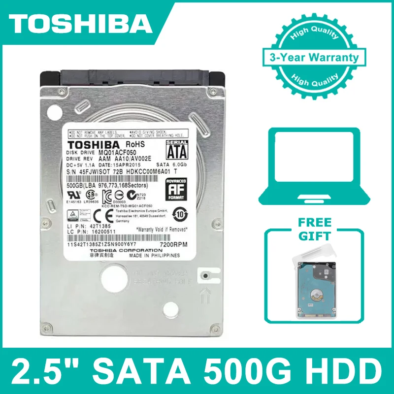 Внутренний жесткий диск для ноутбука TOSHIBA, 500 Гб, 2,5 дюйма, SATA, 5400-7200 об.мин.