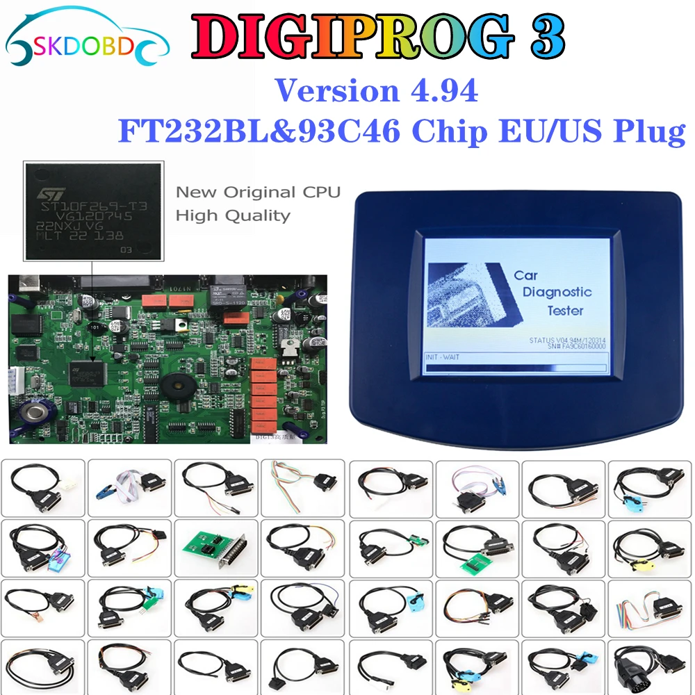 Полный комплект Digiprog 3 лучшего качества для многих с вилкой EUUS, автомобильный программатор Digiprog3 V4.94 DigiprogIII, инструмент для правильного пробега