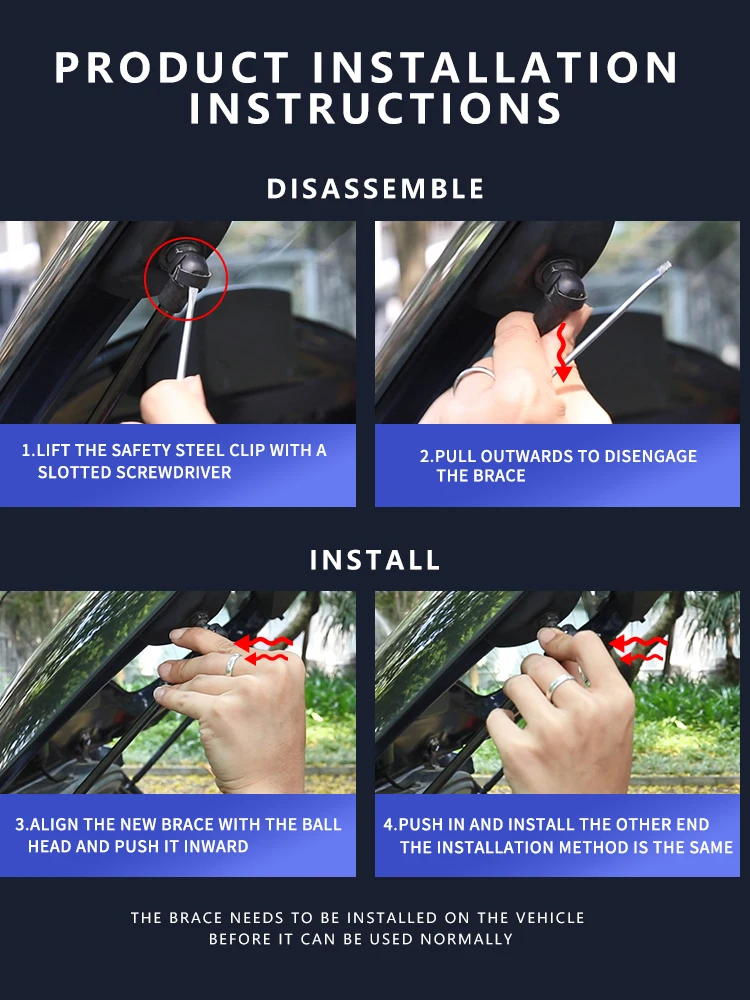 -100% абсолютно новый. Высокое качество!-Простота установки с помощью простых ручных инструментов.-Его поверхность более гладкая и устойчива к коррозии.-Блок цилиндров изготовлен из утолщенной высокоточной стальной трубы, которая обладает очень высоким сопротивлением давлению и не легко деформируется.-Используйте высококачественные уплотнения, длительный срок службы.-Когда мы открываем багажник, он выступает в качестве буфера, который является более трудоемким, более удобным и повышает комфорт использования.