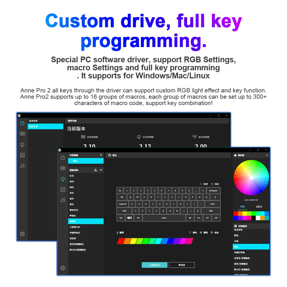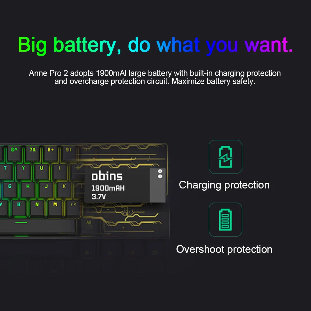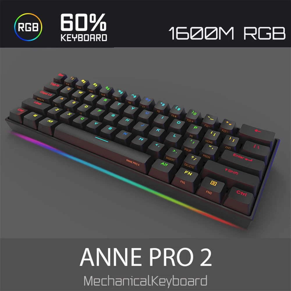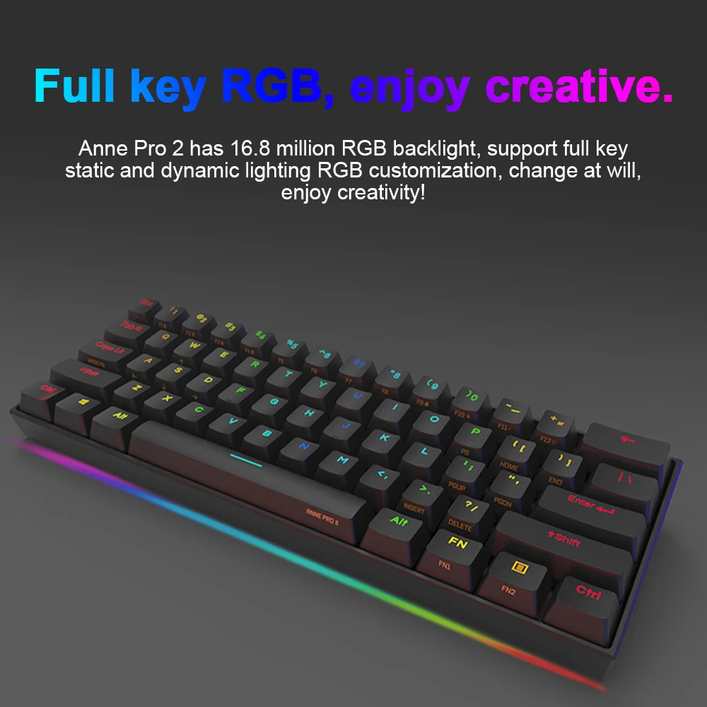 Беспроводная мини-клавиатура Anne Pro2 для игр, 60% портативная механическая клавиатура с Bluetooth, синийкоричневый переключатель Gatreon MX, отсоединяемый кабель