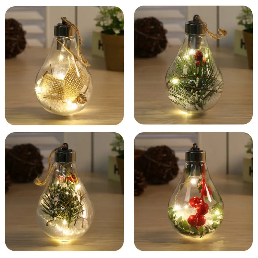 Светодиодный прозрачный шар, рождественские украшения, креативная имитация светильник почки, украшение для рождественской елки, подвесной пластиковый шар