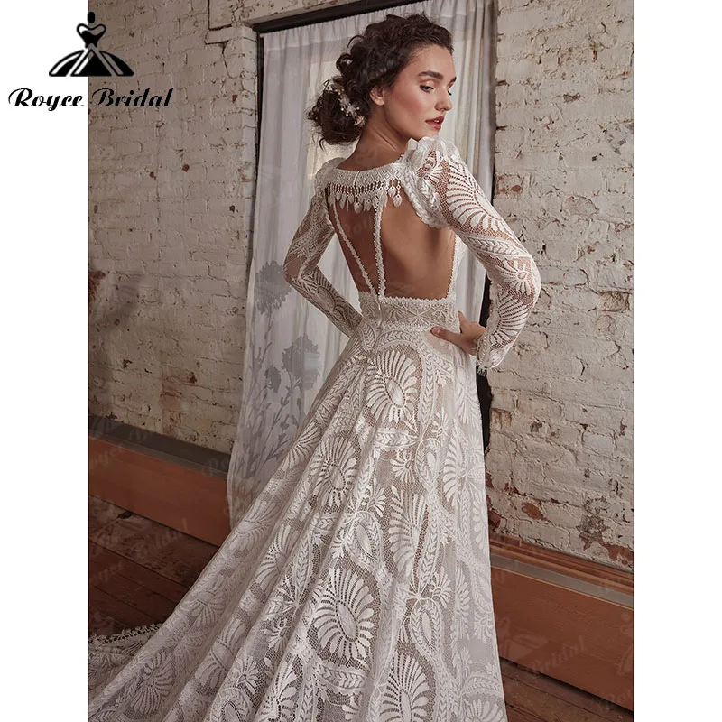 Сексуальное богемное свадебное платье в стиле бохо со съемным длинным рукавом ТРАПЕЦИЕВИДНОЕ пляжное кружевное платье с глубоким V-образным вырезом и открытой спиной на бретельках свадебное платье