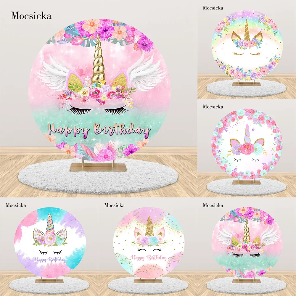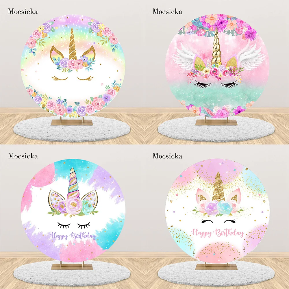Mocsicka Единорог Фотофон детский душ цветы единорог украшение для вечеринки Круглый круглый чехол для студии