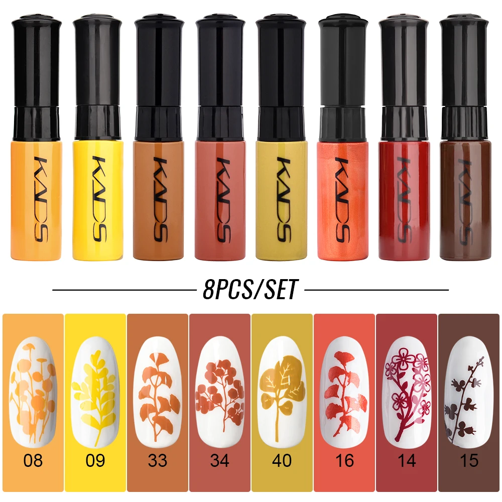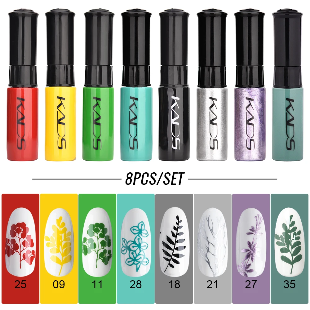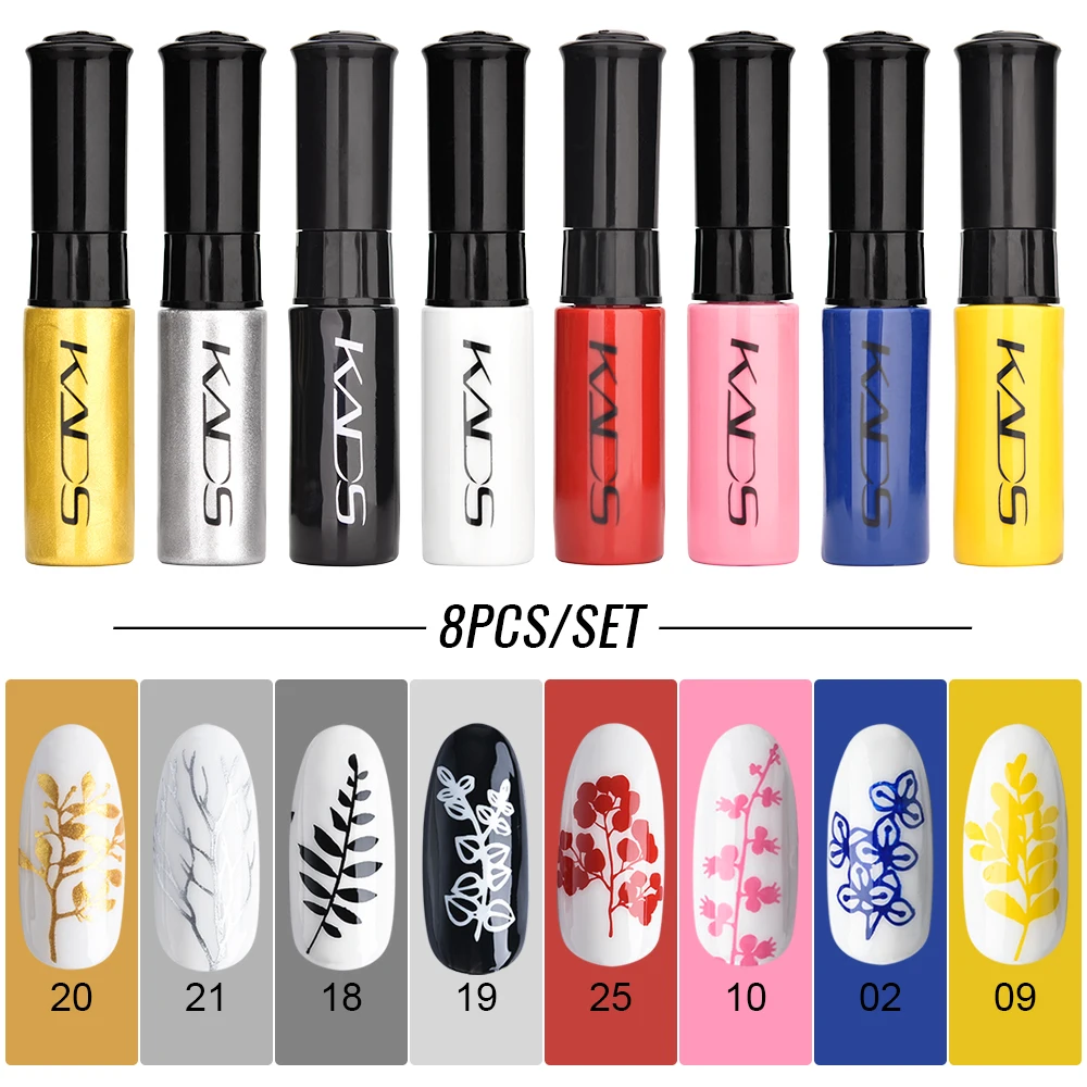 KADS 8 шт стемпинг ногтей покрытие набор 7 мл для штамповки пластины черный белый золотой серебряный ноготь Художественная печать лак красочный лак для ногтей