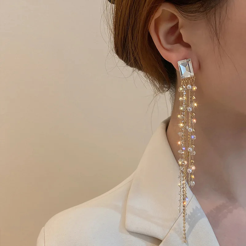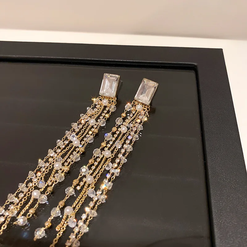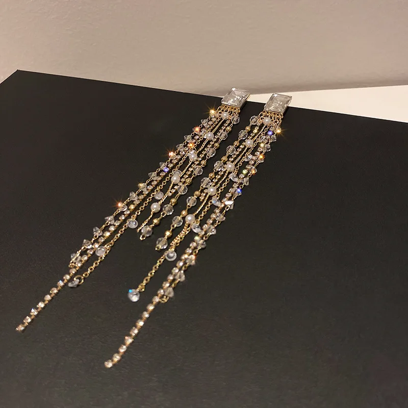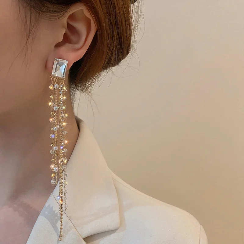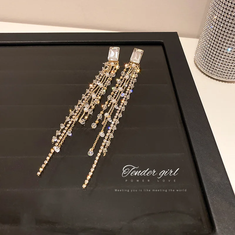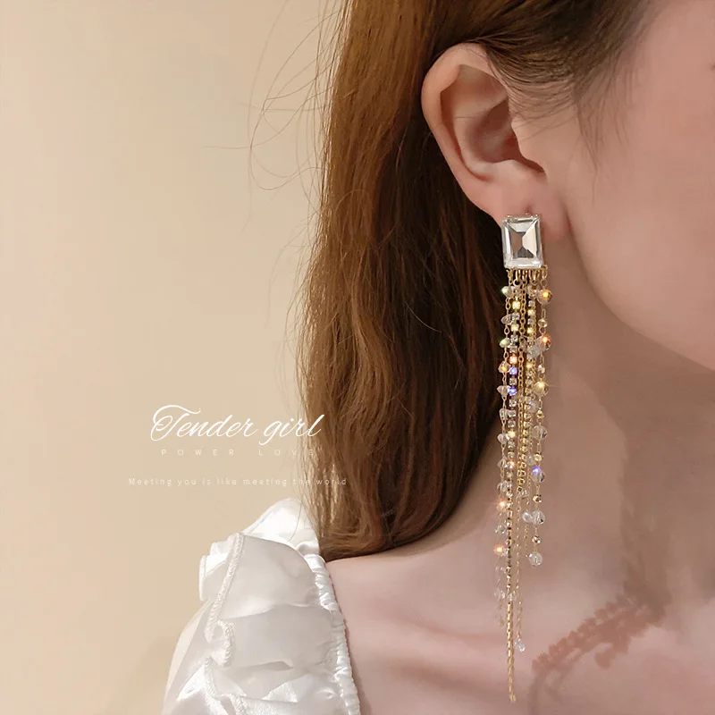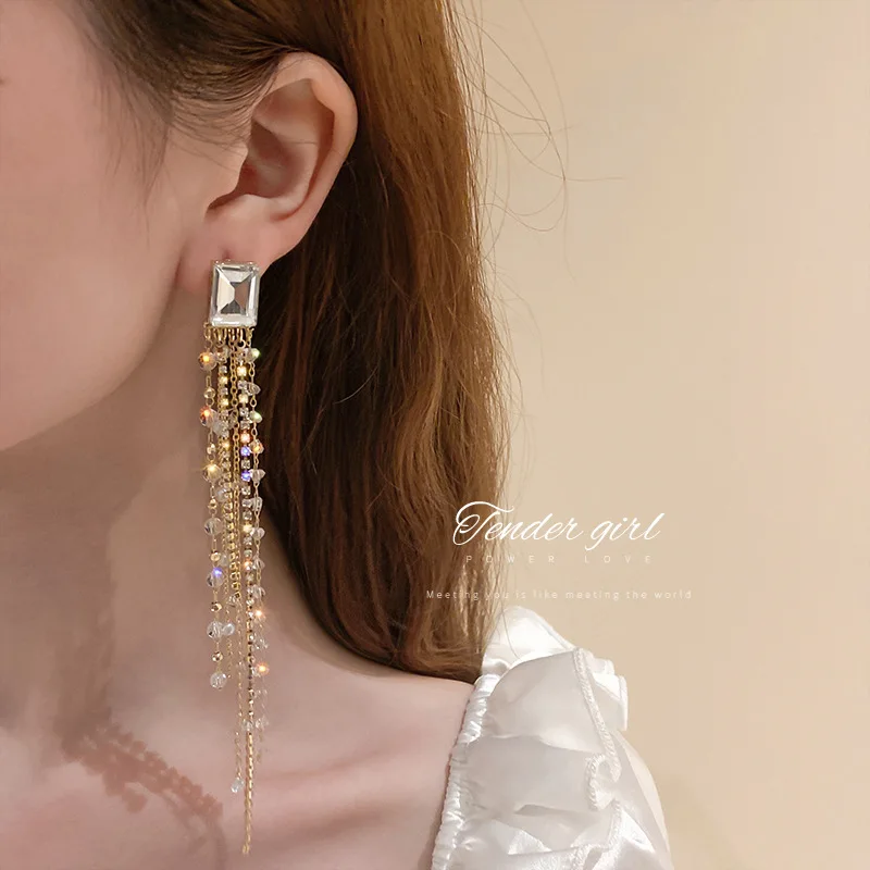 Длинные кисточки кристаллы Висячие серьги для женщин Крест Стразы В...