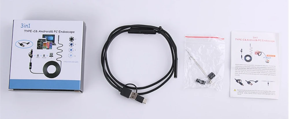 1 * Мини USB эндоскоп1 * микро-type-C линия1 * Руководство пользователя1 * маленький крючок1 * магнит1 * боковое прослушивание1 * бейсболка с камерой