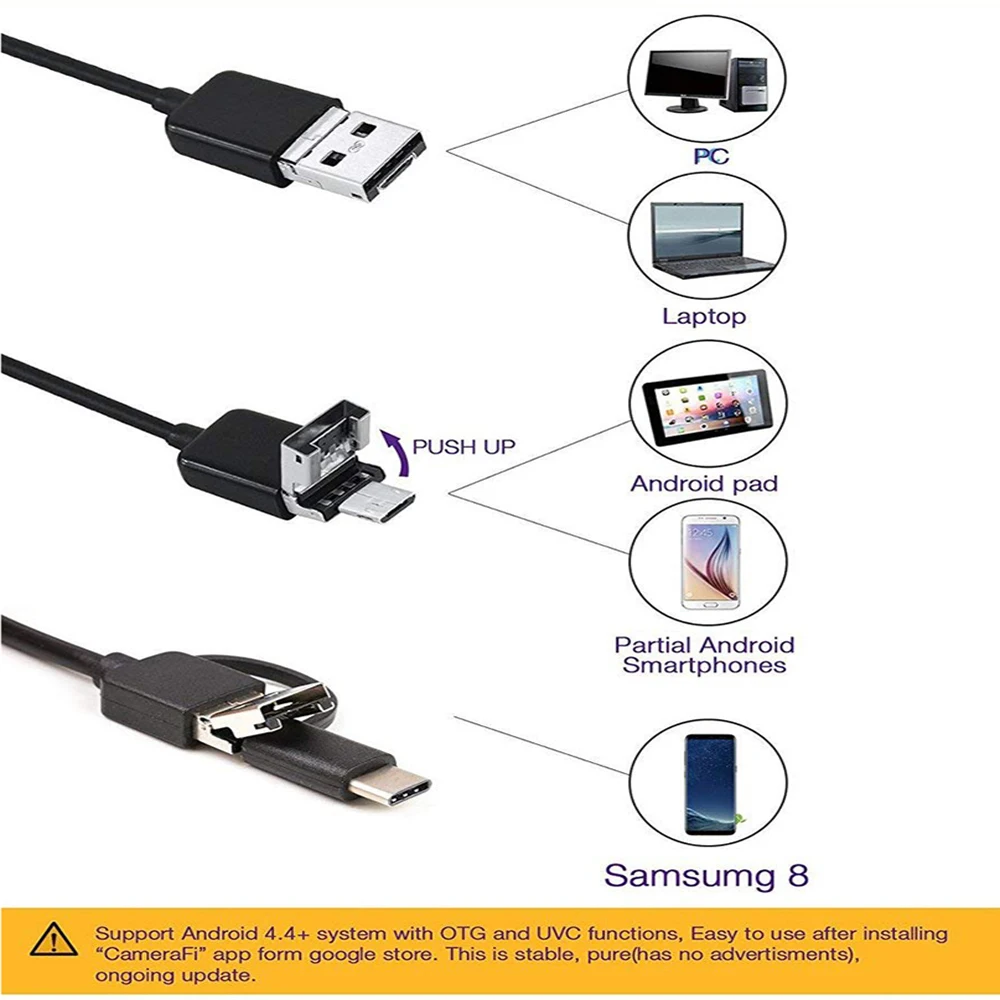 Вы можете использовать этот endoscpoe с Android смартфона/Windows PC/ MAC ПК с помощью этих 3 интерфейса.1. TYPE-C интерфейс ---- для смартфонов Android2. Интерфейс Micro-USB ---- для смартфонов Android3. Интерфейс USB ---- для Windows PC и MAC PCПоддержка системы android 4,4 + с функциями OTG и UVC, прост в использовании после установки приложения «CameraFi» из магазина Google. Это стабильное, чистое (без рекламы) постоянное обновление.