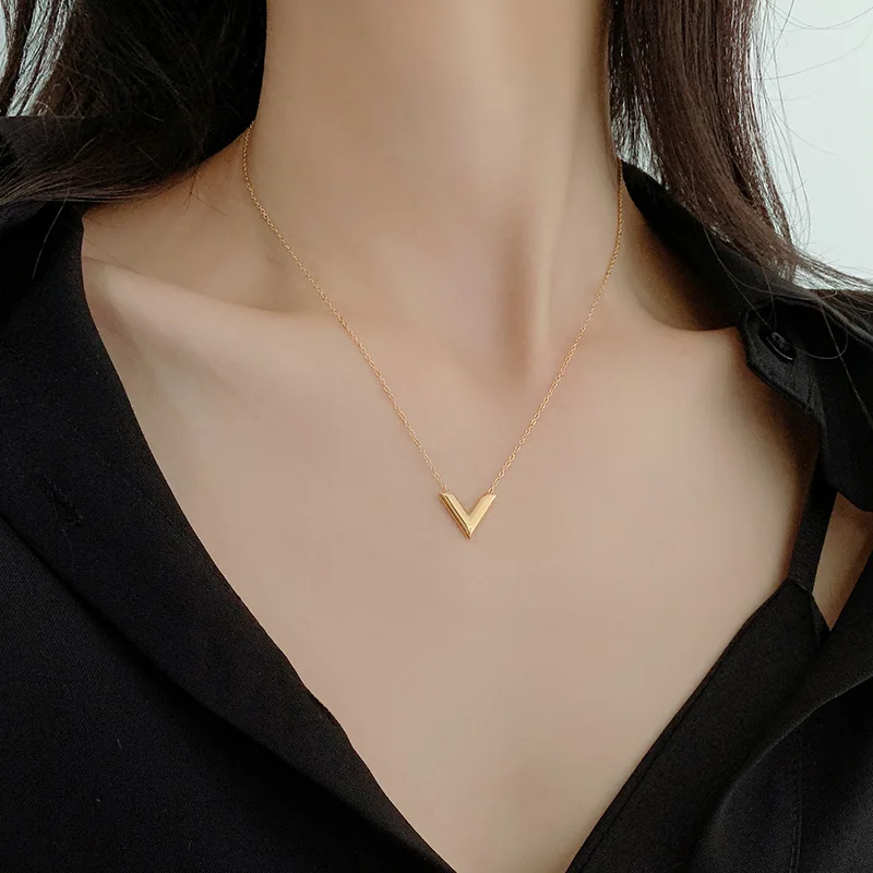 Женское ожерелье с V-образной подвеской, модное металлическое колье...