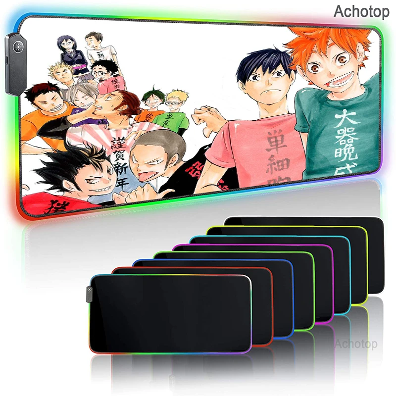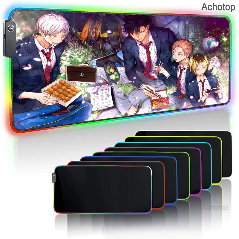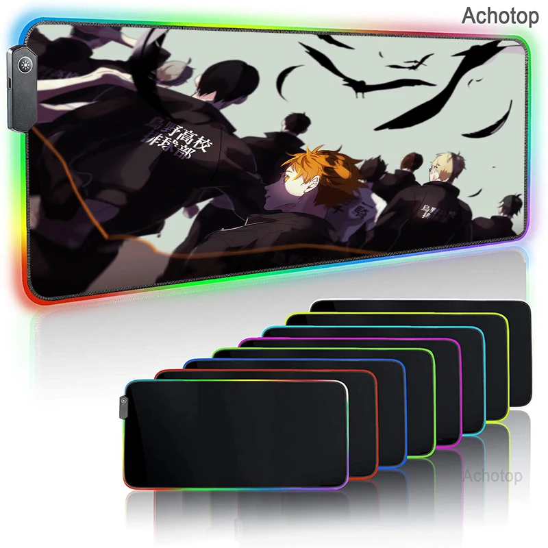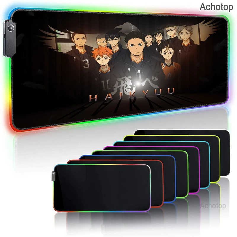 Haikyuu Аниме Коврик для мыши RGB компьютерный коврик для мыши большой игровой коврик для мыши XXL Mause колодки розовый PC Gamer 900x400 настольный коврик светодиодный коврик