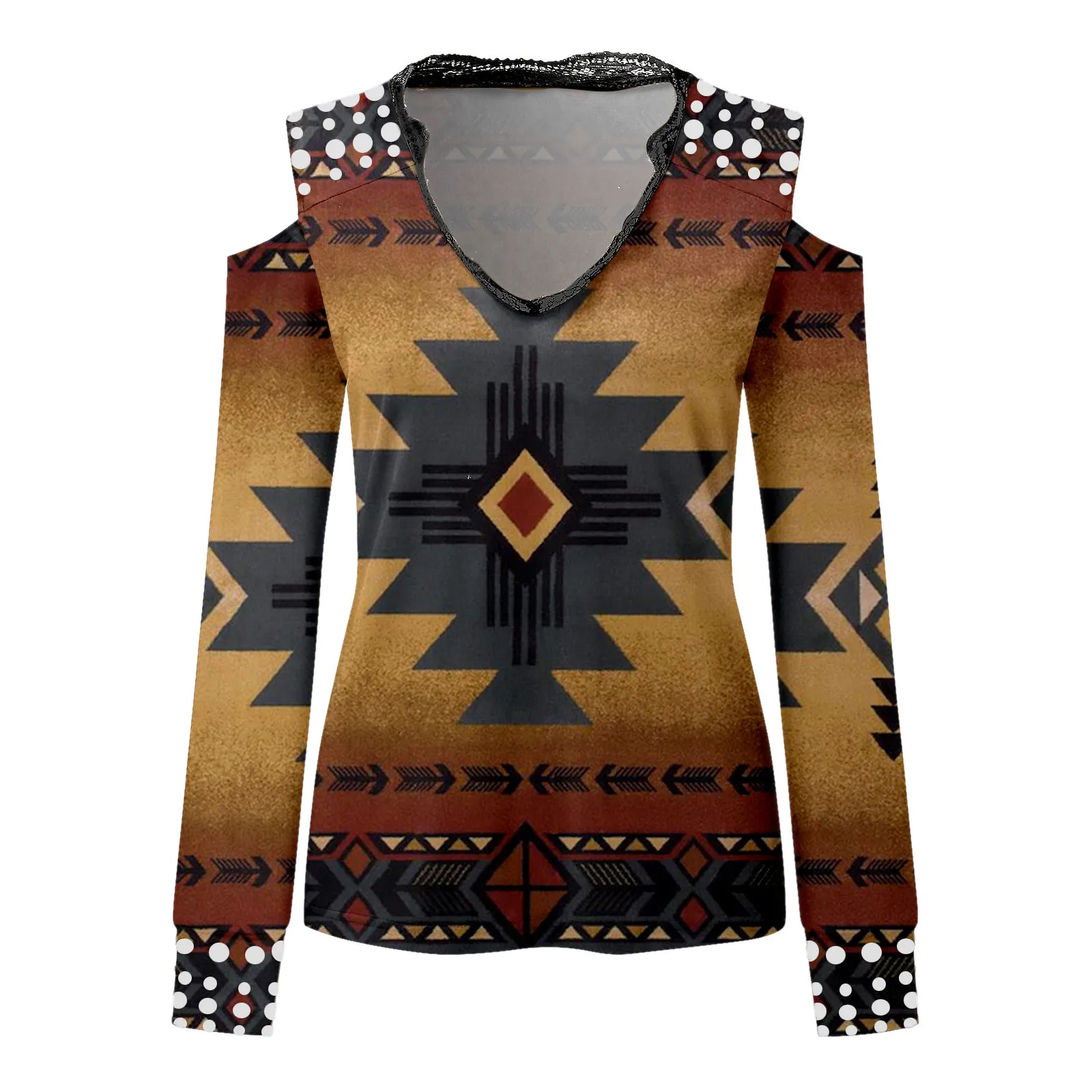 Женская футболка с длинным рукавом, V-образным вырезом и открытыми плечами