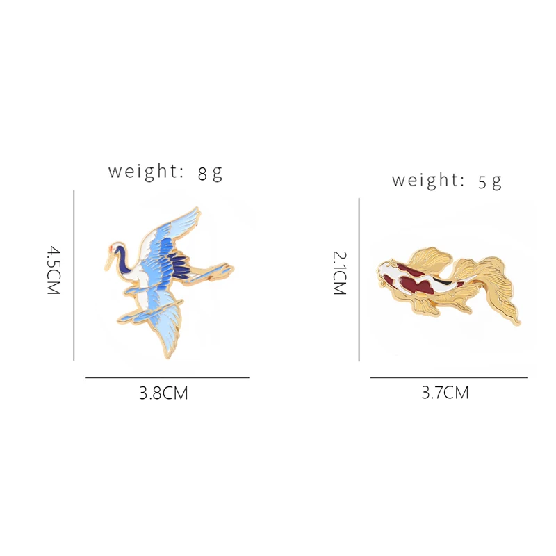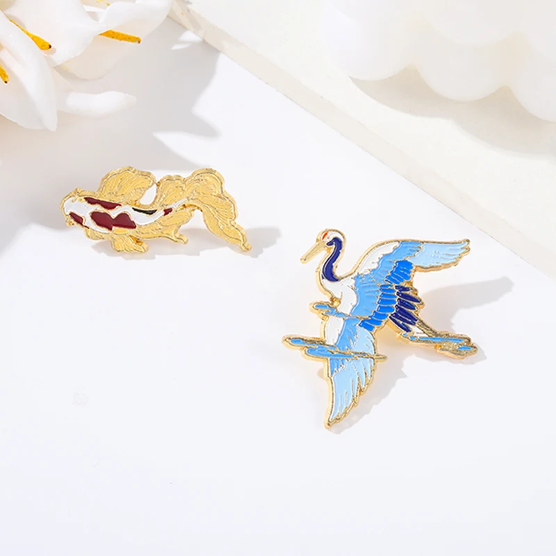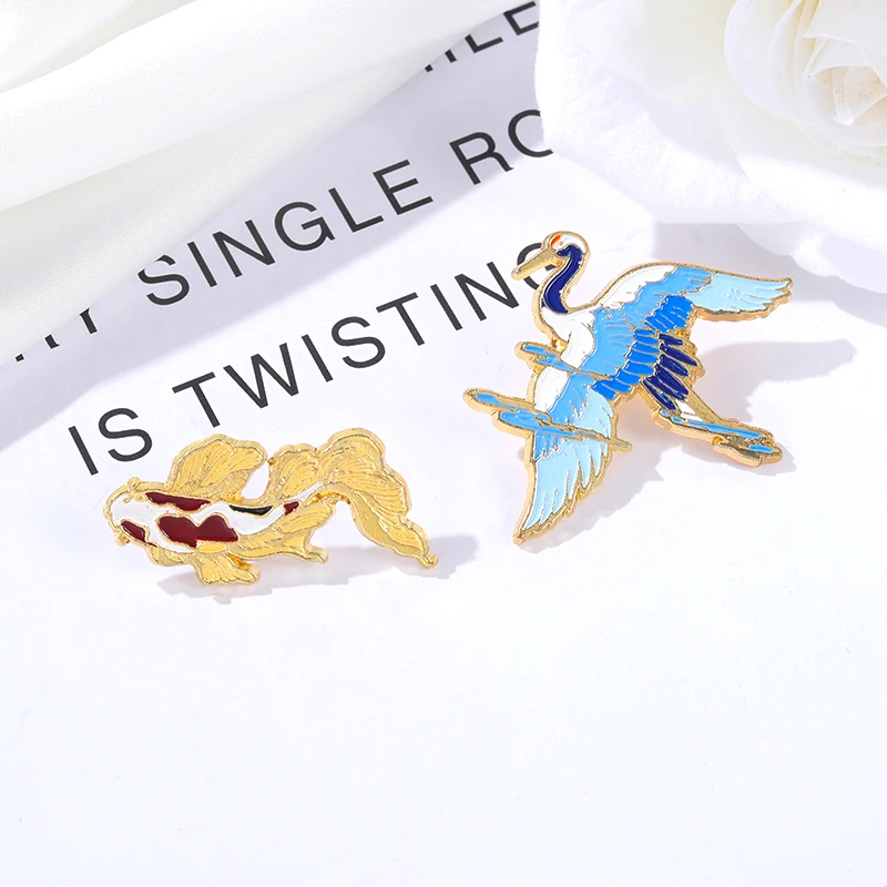 Эмалированная булавка в виде мультяшного Журавля, счастливая рыба, кои, животное, рыба, значок на лацкан, одежда, свитер, ювелирные изделия, подарок, стандартная оптовая продажа