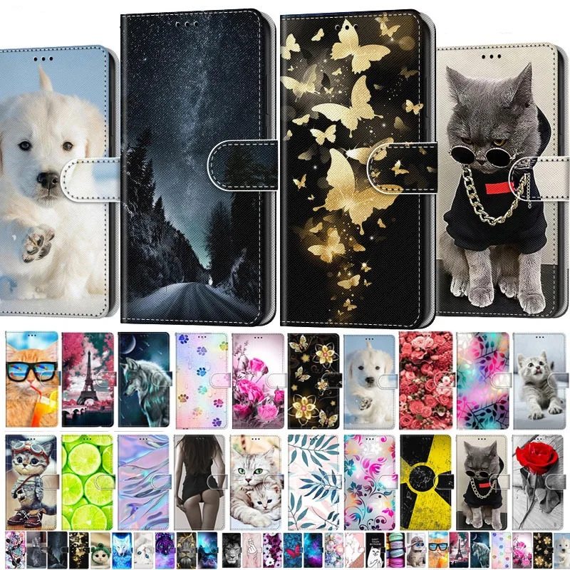 Кожаный флип-чехол для телефона Nokia 5,4 1,4 2,4 3,4 с изображением милого кота и цветка, кошелек с держателем для карт, чехол-книжка с подставкой и бабочкой