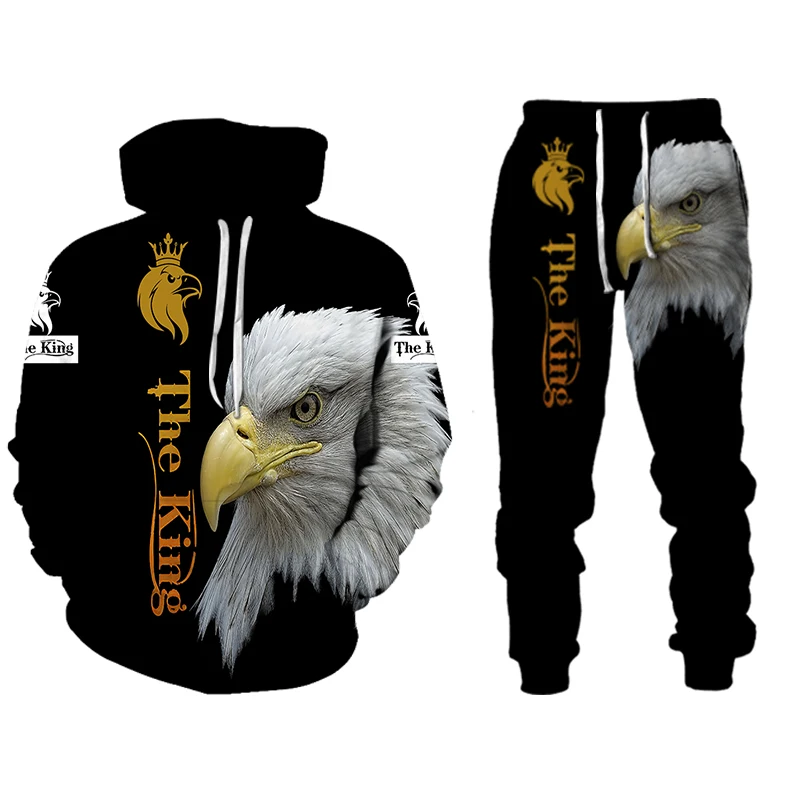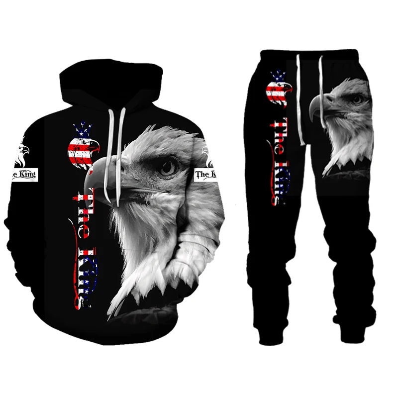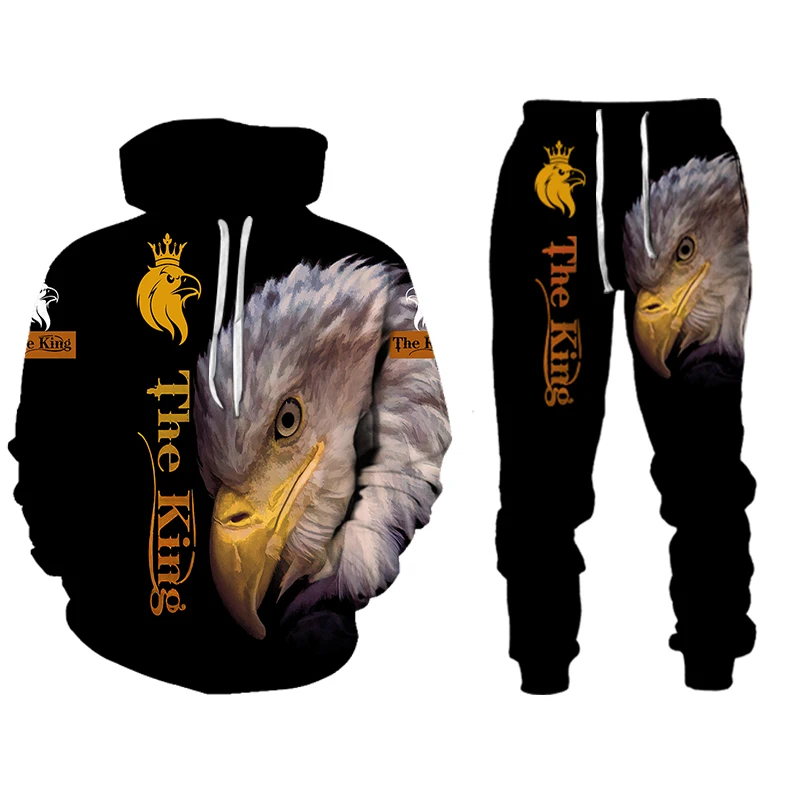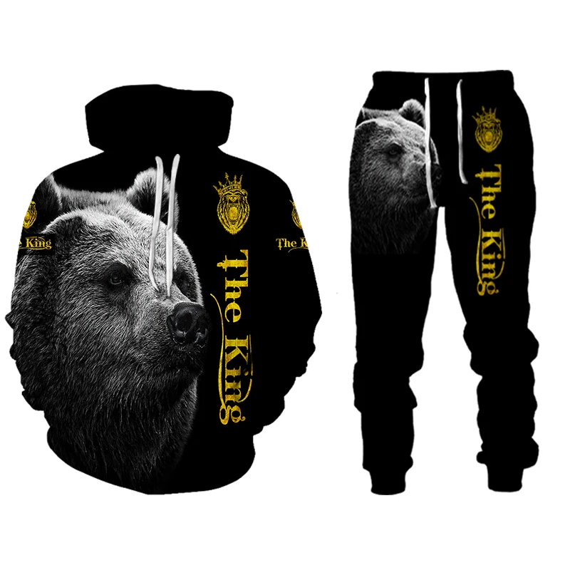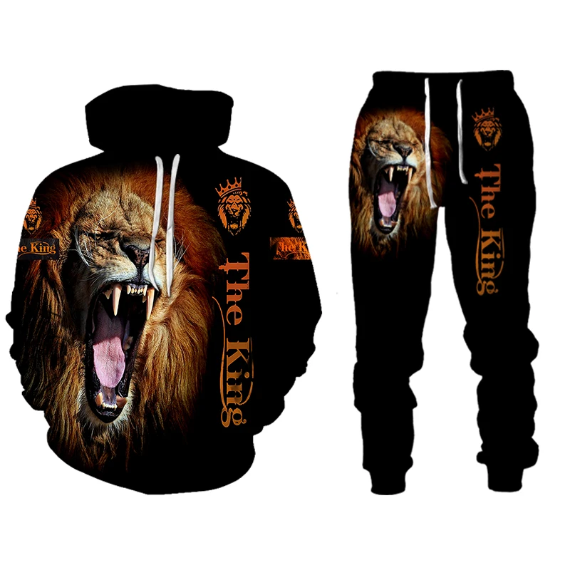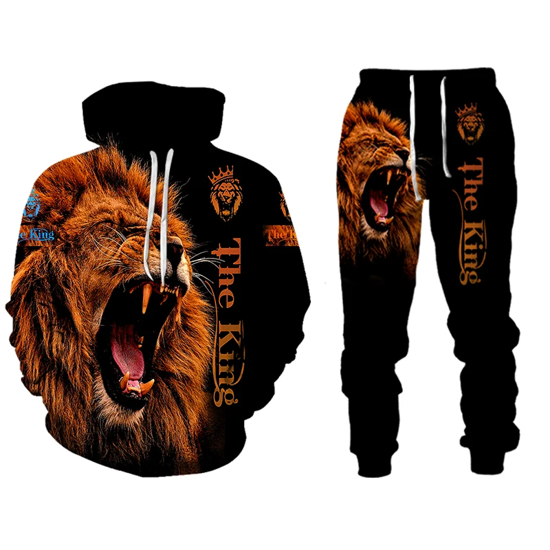 Костюм спортивный мужской из двух предметов, кофта с 3D-принтом льва, свитшот, брюки оверсайз, одежда для отдыха с аниме