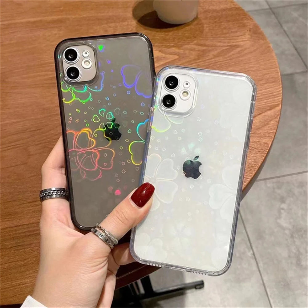 Прозрачная рамка с милым лазером Любовь Сердце цветок бумажный чехол для телефона iPhone 13 Pro Max Mini 12 11 Pro Max X XR XS SE 2020