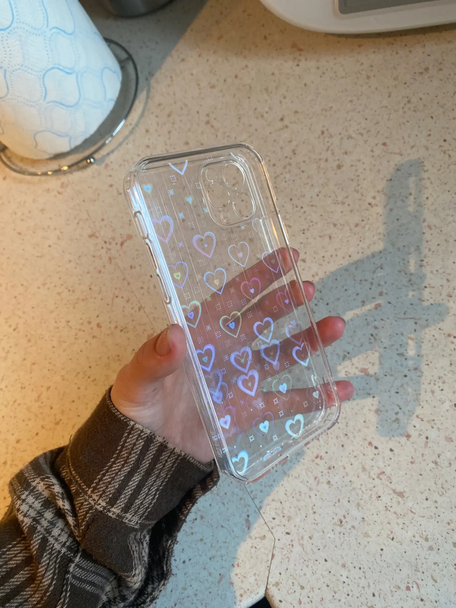 Офигенный чехол за 3 недели в Москву прилетел. В целом все хорошо красиво сверкает, но я думала что эти сердца нарисованы на чехле, а тут подкладка, но в основном 10/10 противоударный и закрывает камеру