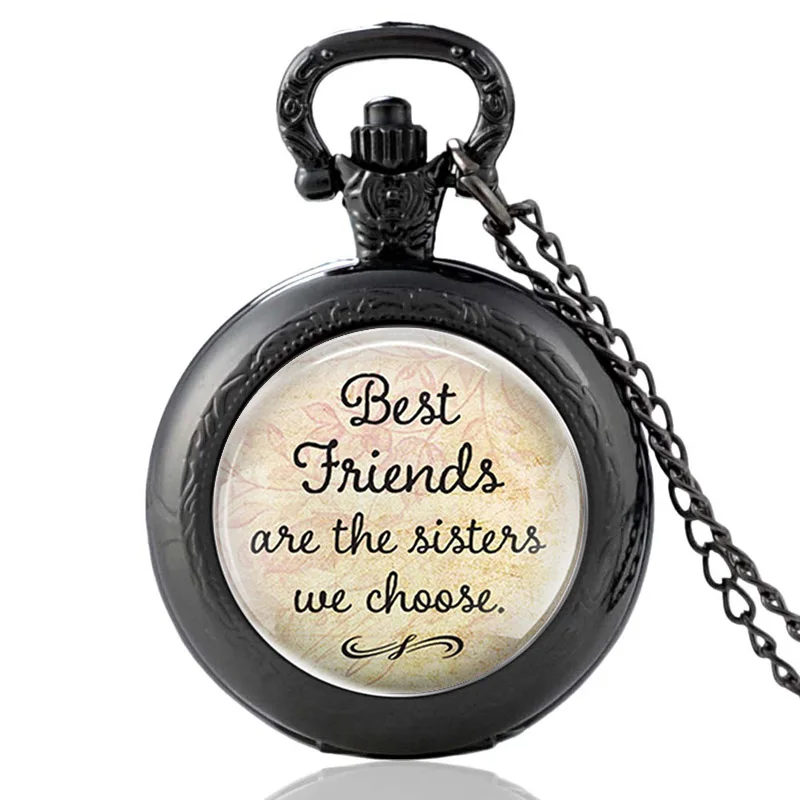 Черные классические кварцевые карманные часы с кабошоном Лучшие друзья-сестры, мы выбираем ожерелье с подвеской для мужчин и женщин, подарки