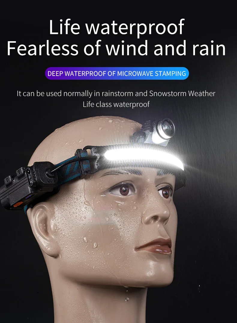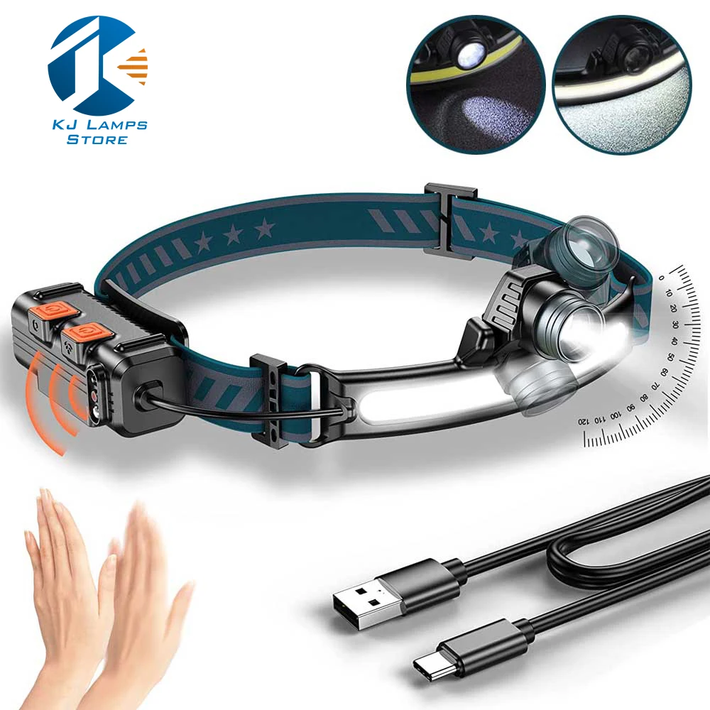 Индукционный налобный фонарь с COB матрицей, 6-режимный Головной фонарь с аккумулятором, Аккумуляторный водонепроницаемый головсветильник светильник, фонарь с зумом для кемпинга, освещение для палатки, рыбалки