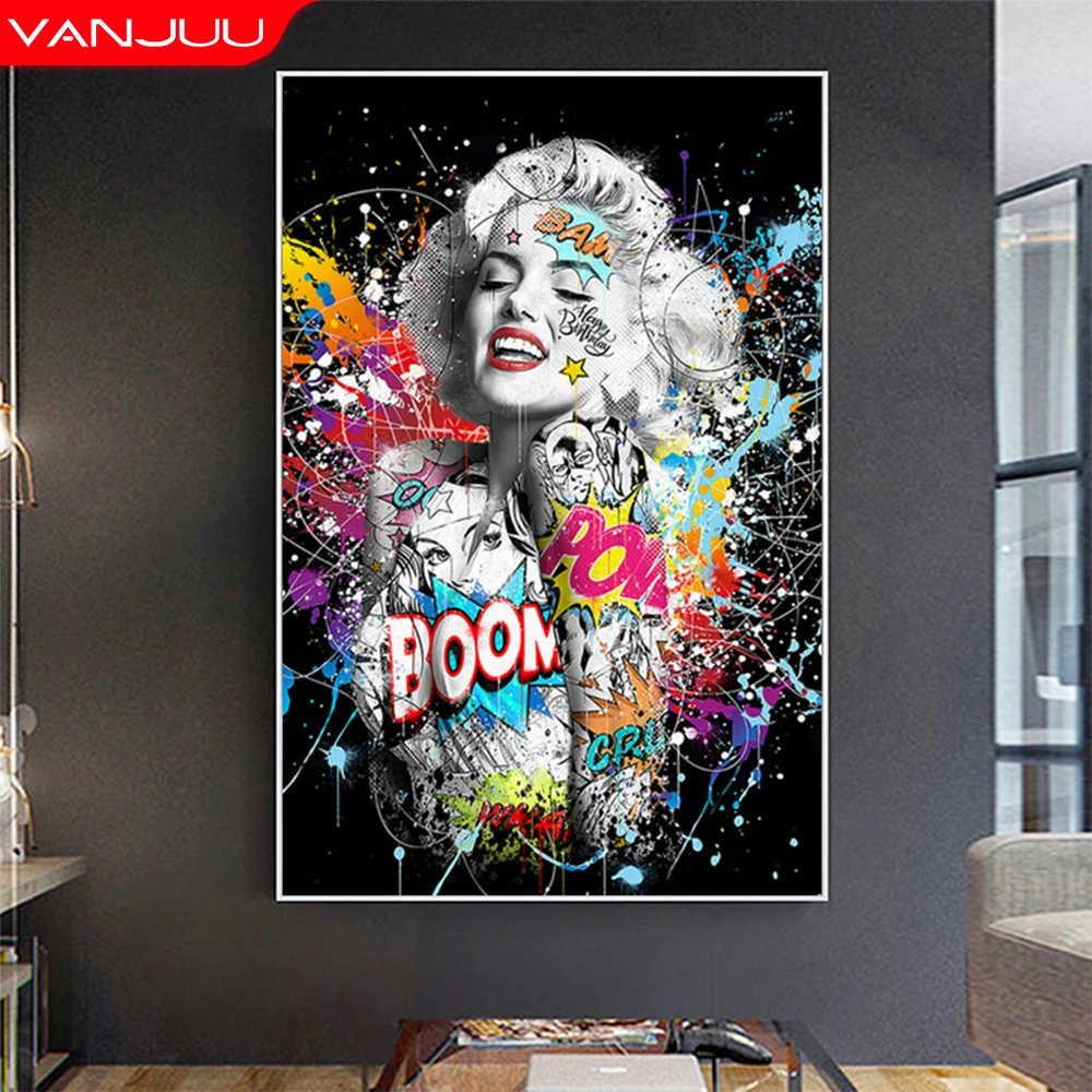 Граффити искусство Мэрилин сексуальный портрет, холст, живопись пос...