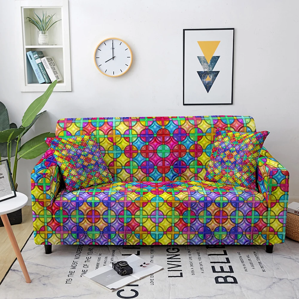 Чехол для дивана с абстрактным геометрическим рисунком, эластичный чехол на 3 места, для гостиной, эластичное противоскользящее покрытие для дивана