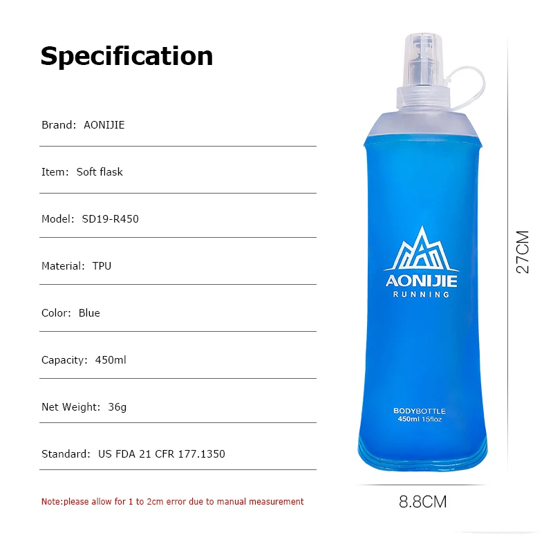 AONIJIE SD19 R450 мягкая складная фляжка 450 мл бутылка для воды ТПУ не содержит Бисфенол А упаковка для бега гидратации поясная сумка жилет марафон