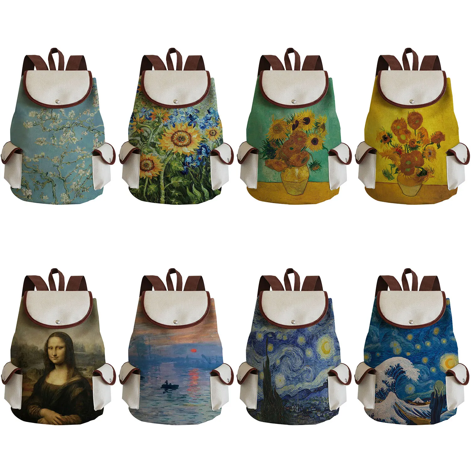 Женский вместительный рюкзак с принтом Ван Гога, Сумка с масляной живописью для мужчин и женщин, студенческие ретро сумки, детская сумочка с благословением, подарок на день рождения