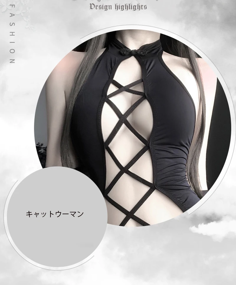 Слитное боди на шнуровке с открытой спиной, сетчатый купальник с вырезами, сексуальное аниме нижнее белье, Женский мультяшный костюм дьявола в стиле "Лолита"
