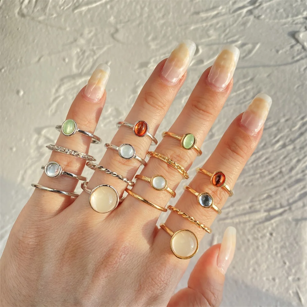 IPARAM 2021 винтажный красочный камень металлик набор колец для женщин Модный корейский набор колец из смолы женские ювелирные изделия для девочек