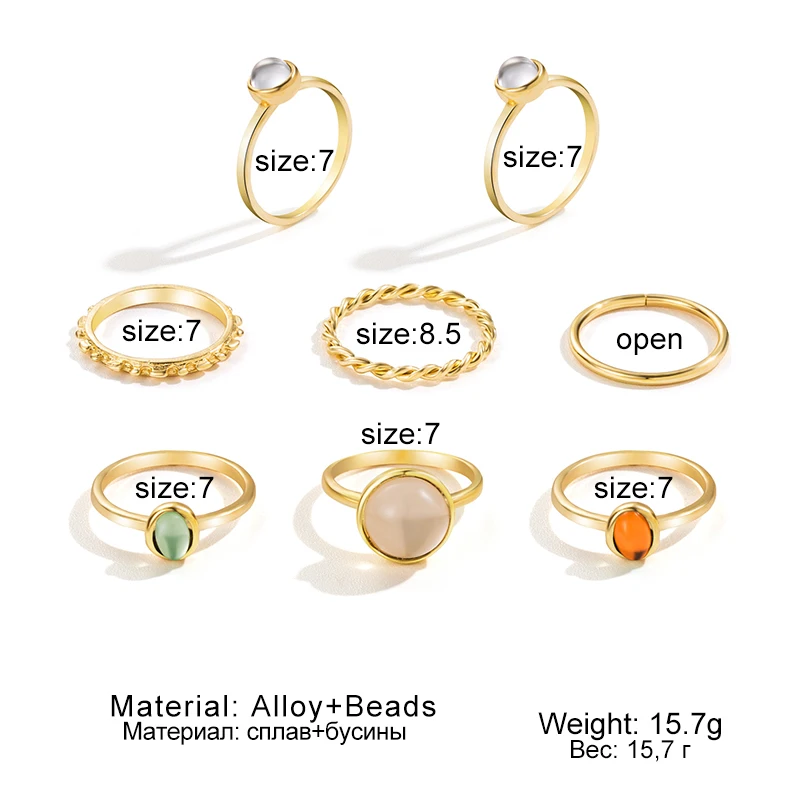ZOVOLI 2021 Новинка Корея 8 шт.компл. винтажный цветной камень мета...