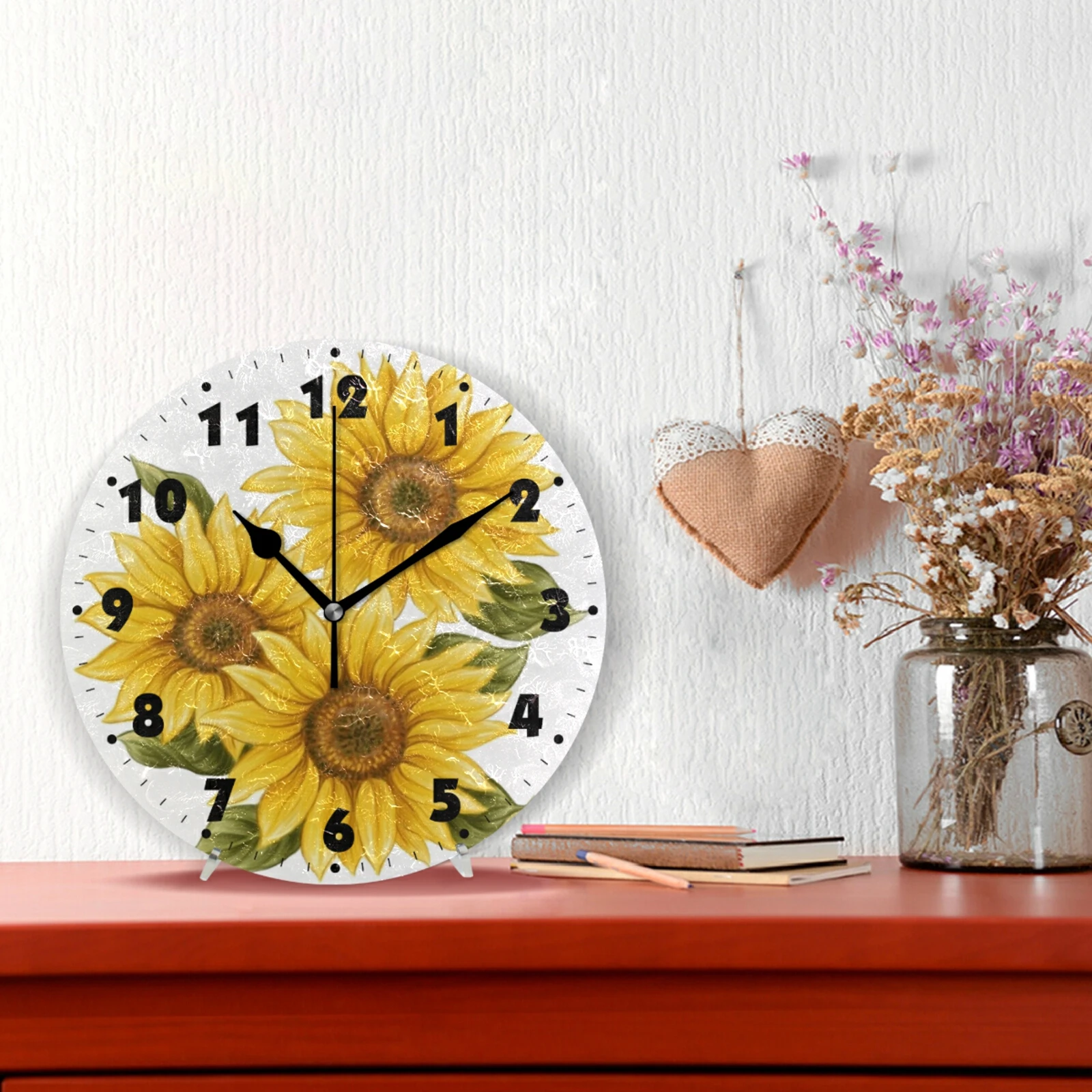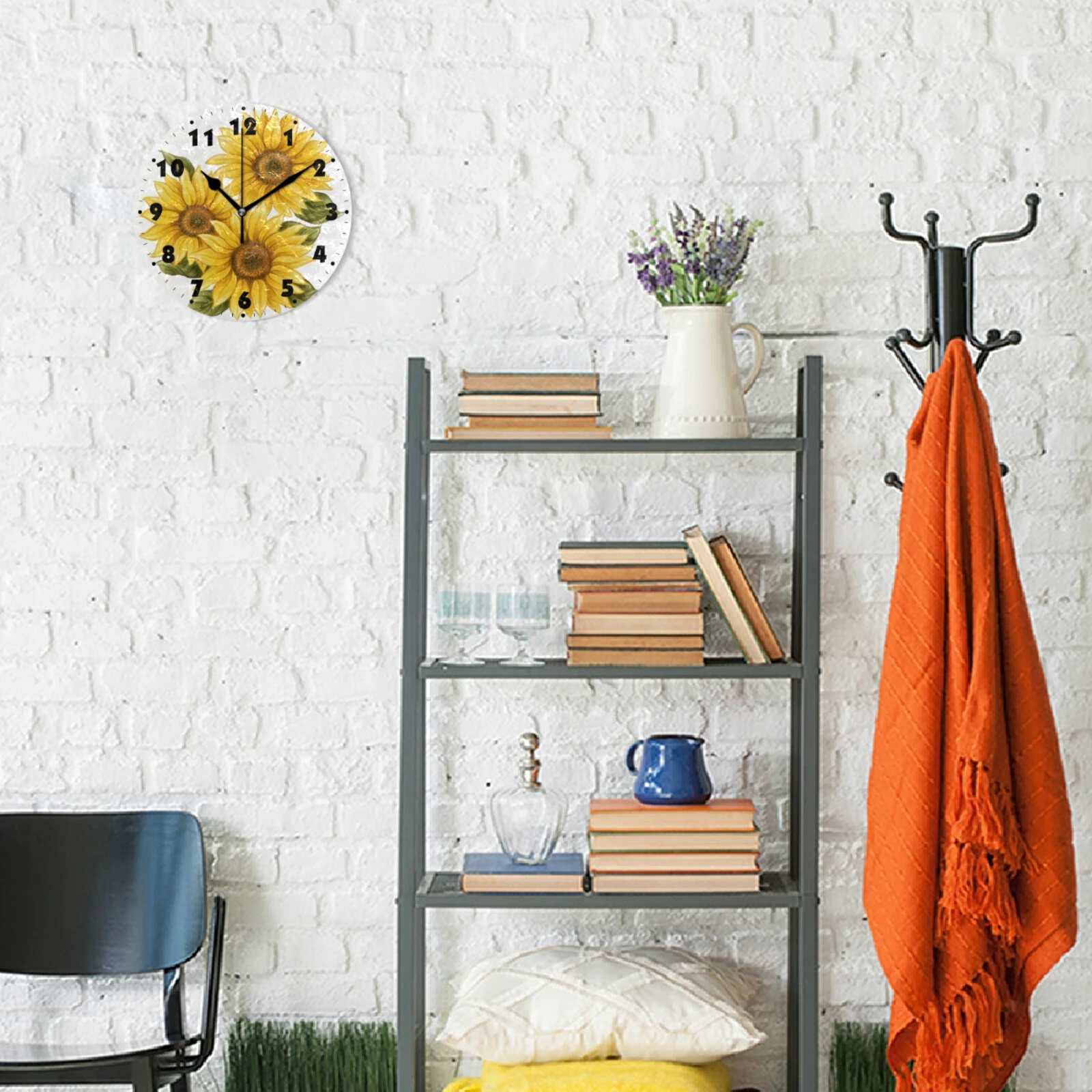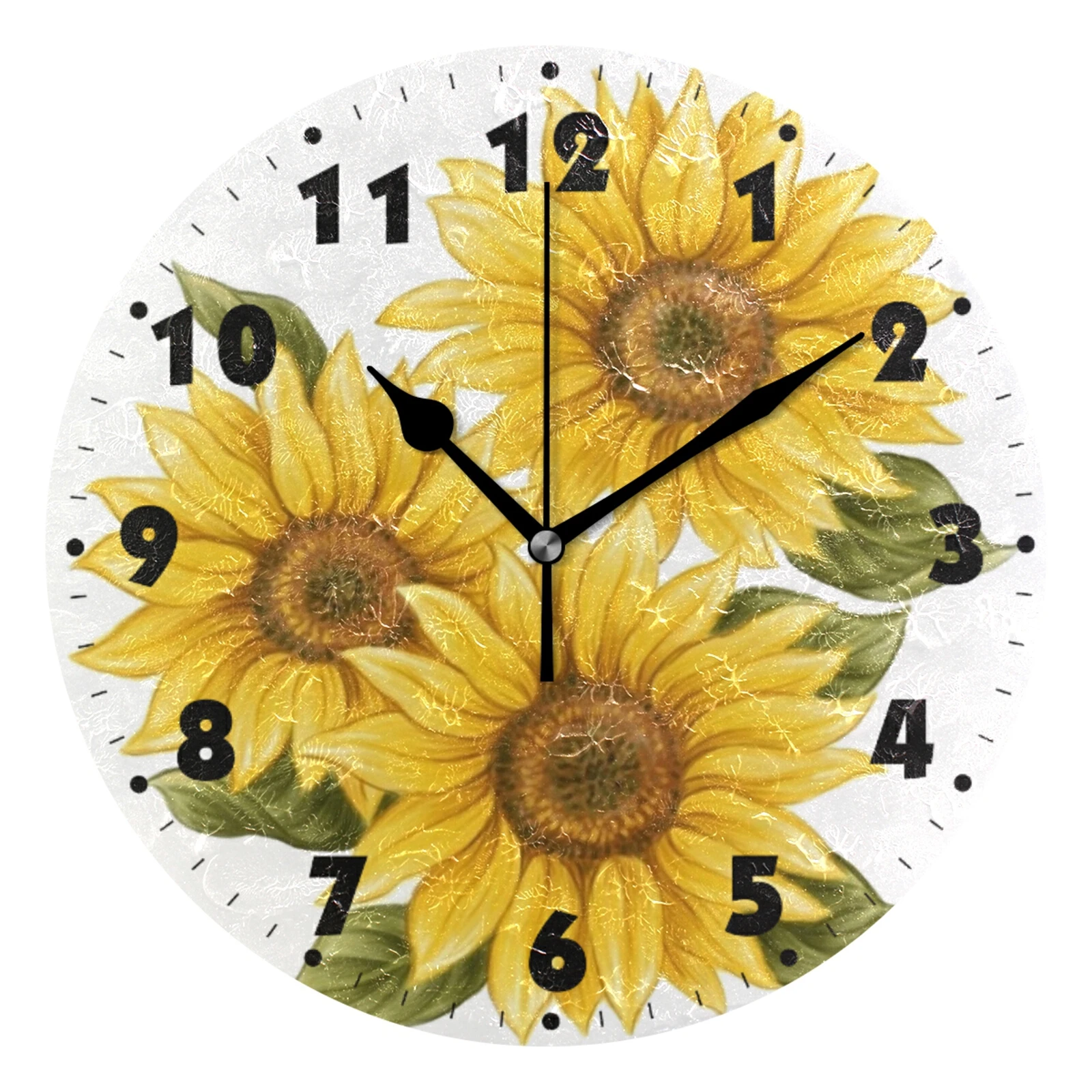 Часы настенные с тихим подсолнухом, круглые бесшумные настольные украшения на батарейках для гостиной и спальни