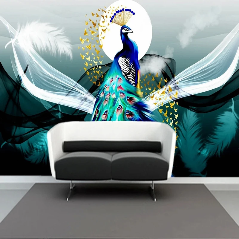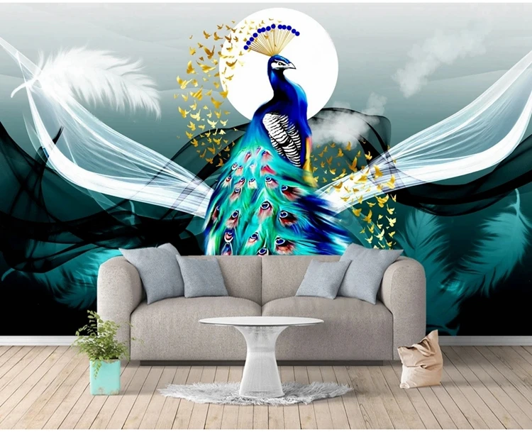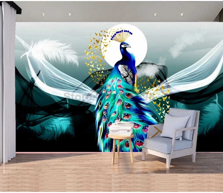 Новые китайские Настенные обои с изображением перьев лунного павлина с рисунком ТВ дивана гостиной фоновое настенное украшение для спальни живопись