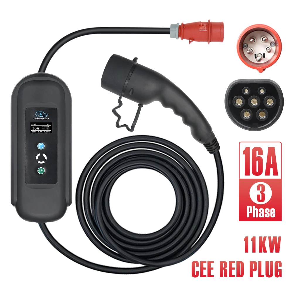 7 метров, тип 2, 16 А, 3 фазы, 11 кВт, быстрая зарядка для электромобилей, 5 м, кабель, портативное зарядное устройство с регулируемым током для электромобиля IEC 62196-2