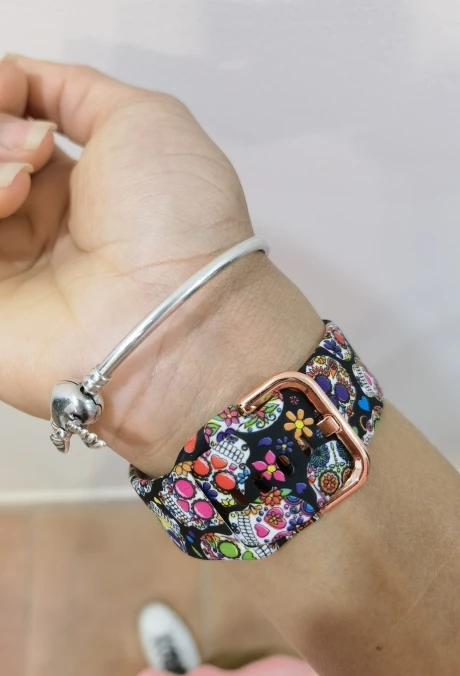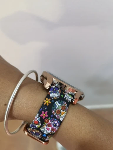 Хороший браслет, яркий рисунок. Доставка до пункта выдачи в пятёрочке (г. Москва) около 2 недель. Единственное, не моём запястье, застегивая на последнюю дырочку, часы болтаются. Буду думать, как сделать дополнительное отверстие, чтобы ремешок не разорвался.
