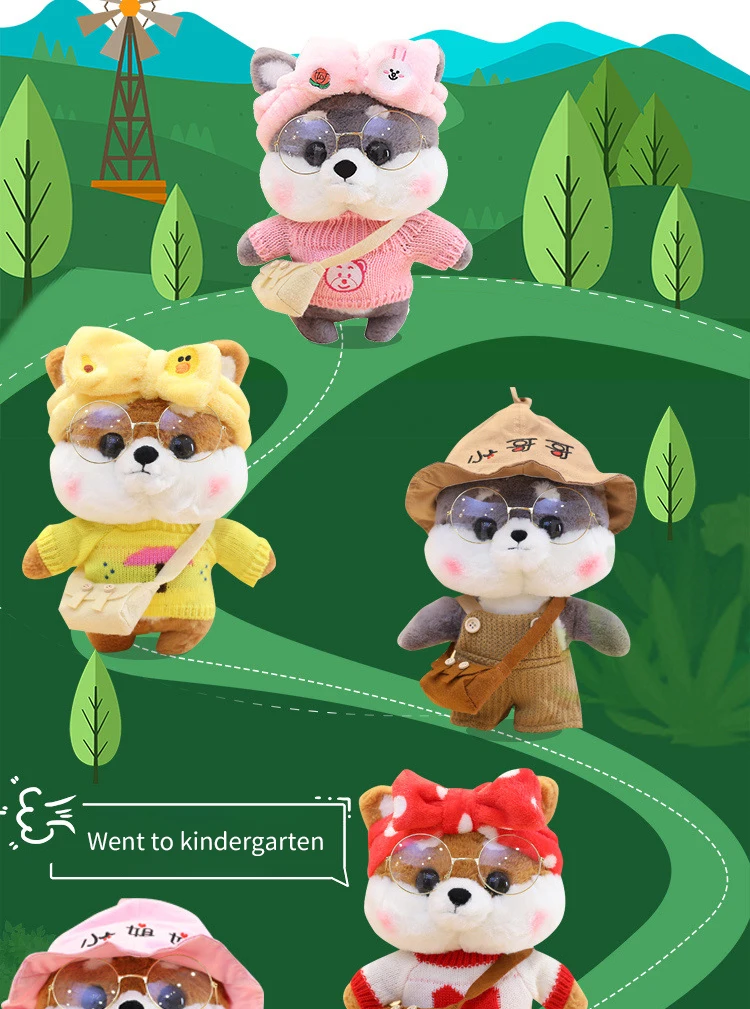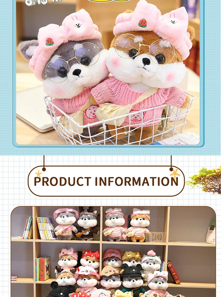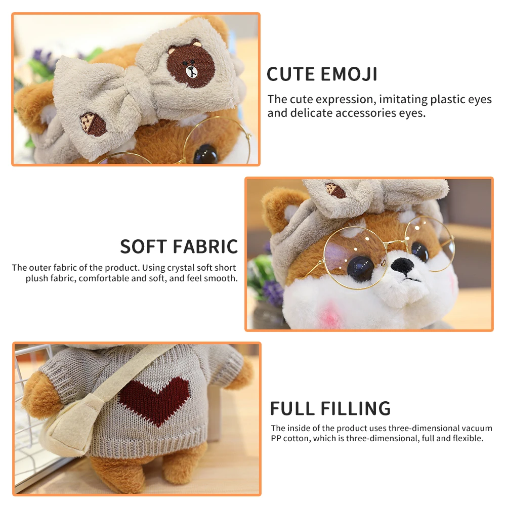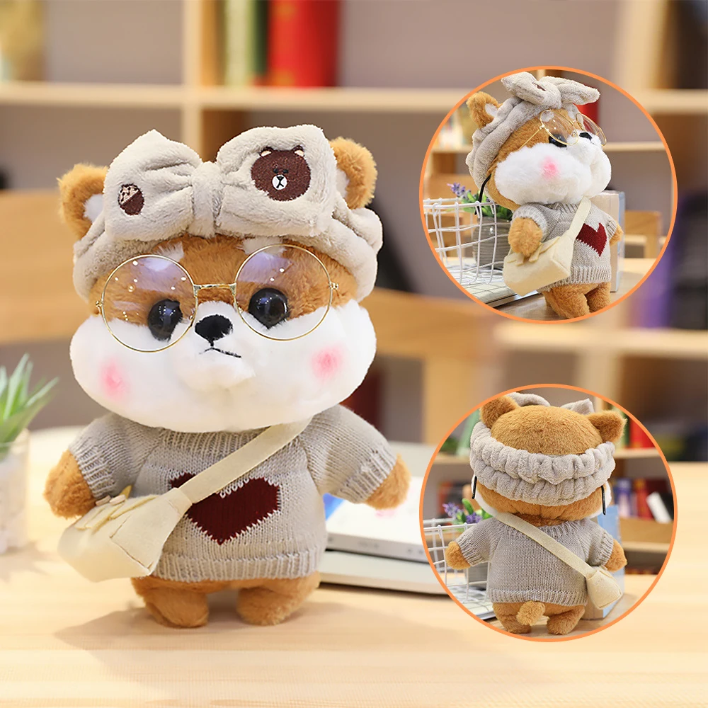 Симпатичная плюшевая игрушка Сиба-ину 30 см с кавайной одеждой, мяг...