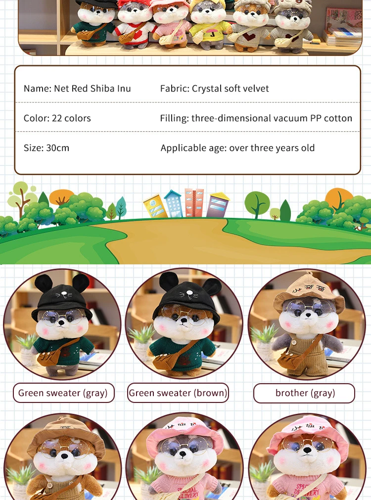 Мультяшная собака лалафан Шиба-ину, плюшевая игрушка, игрушки, наряд, кукла, подушка, кавайная для ребенка, девочка, подарок на день рождения, 30 см