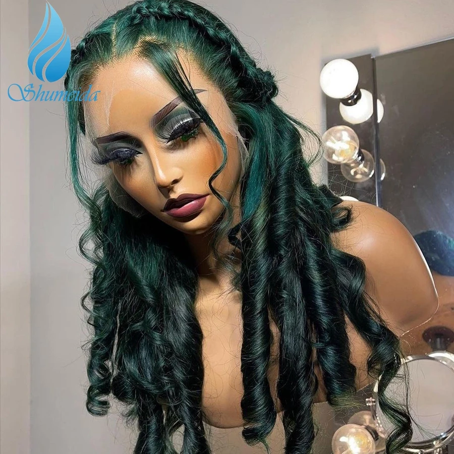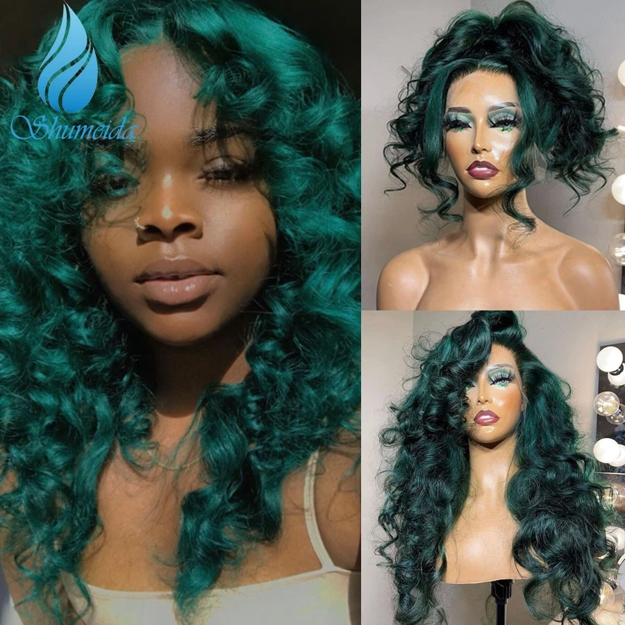 Парики Shumeida из натуральных волос, зеленые, 13 х4 цвета, перуанс...