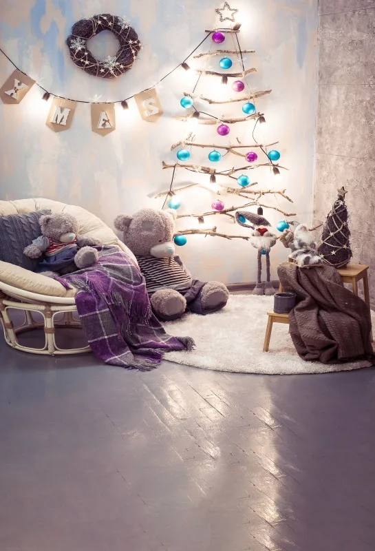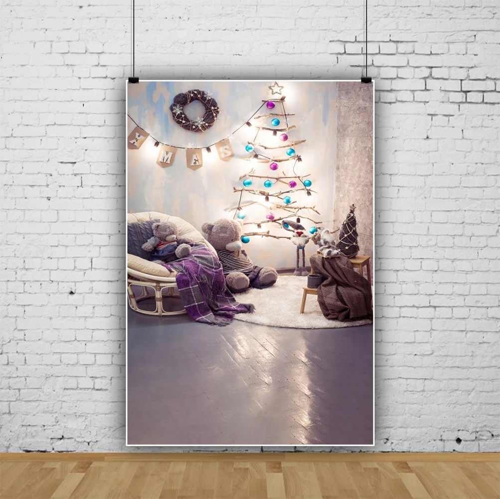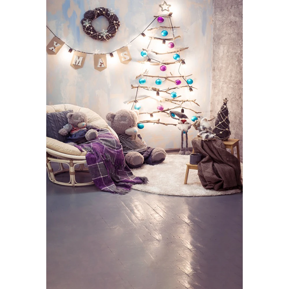 Рождественский фон с рождественскими мотивами внутри помещения с изображением дерева для детской портретной фотосъемки Мишка Тедди фон для фотосъемки в фотостудии Фотофон