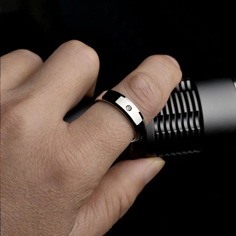 Кольцо унисекс из титана и нержавеющей стали, с фианитами AAA