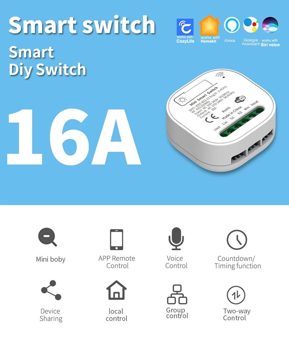 16A Homekit мини-переключатель выключателя модуль Wi-Fi беспроводной пульт дистанционного управления выключатель света умный дом гаджет для Google Home Alexa Алиса alice