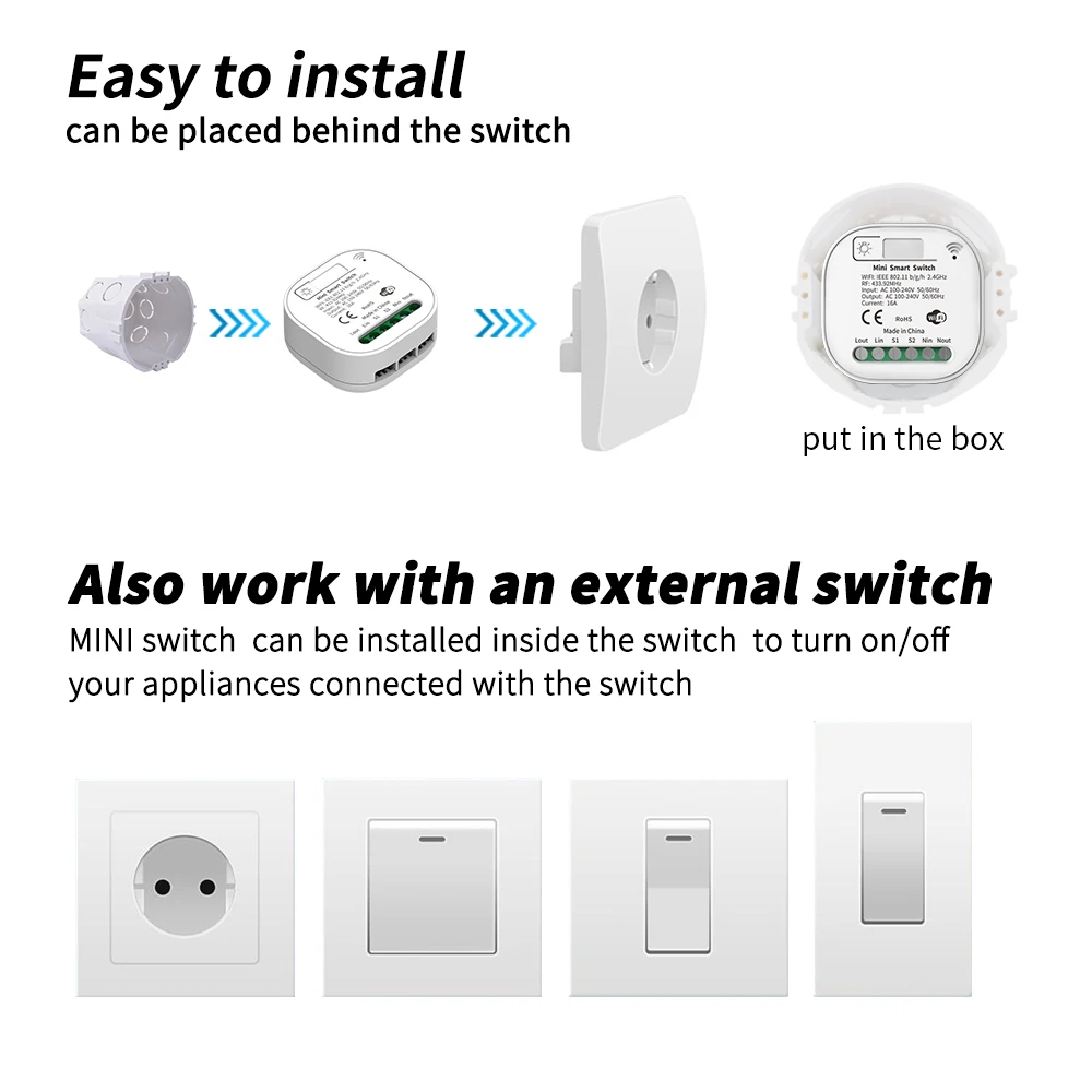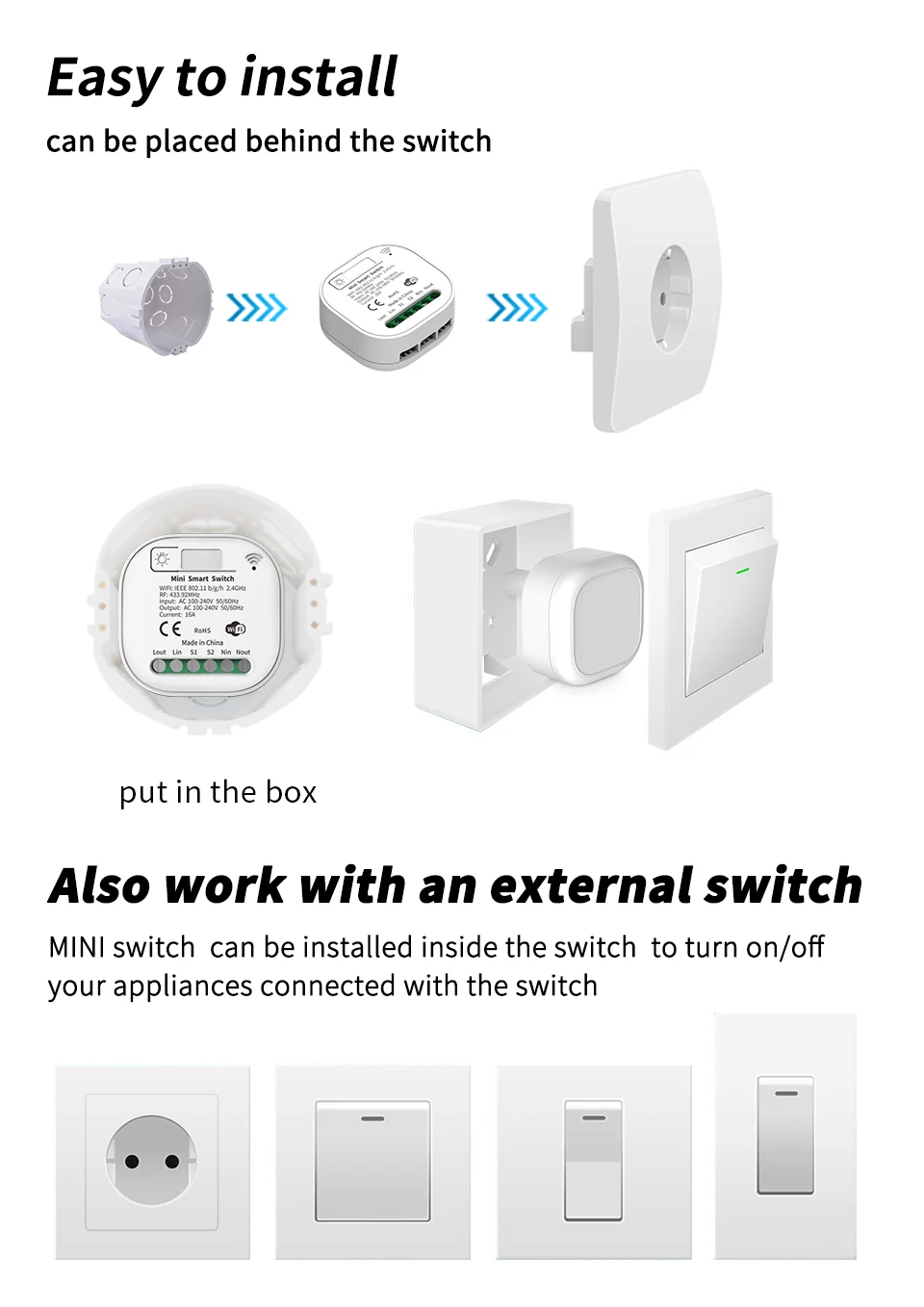 Мини-переключатель может быть установлен внутри выключателя для включения/выключения ваших приборов, подключенных к выключателю.