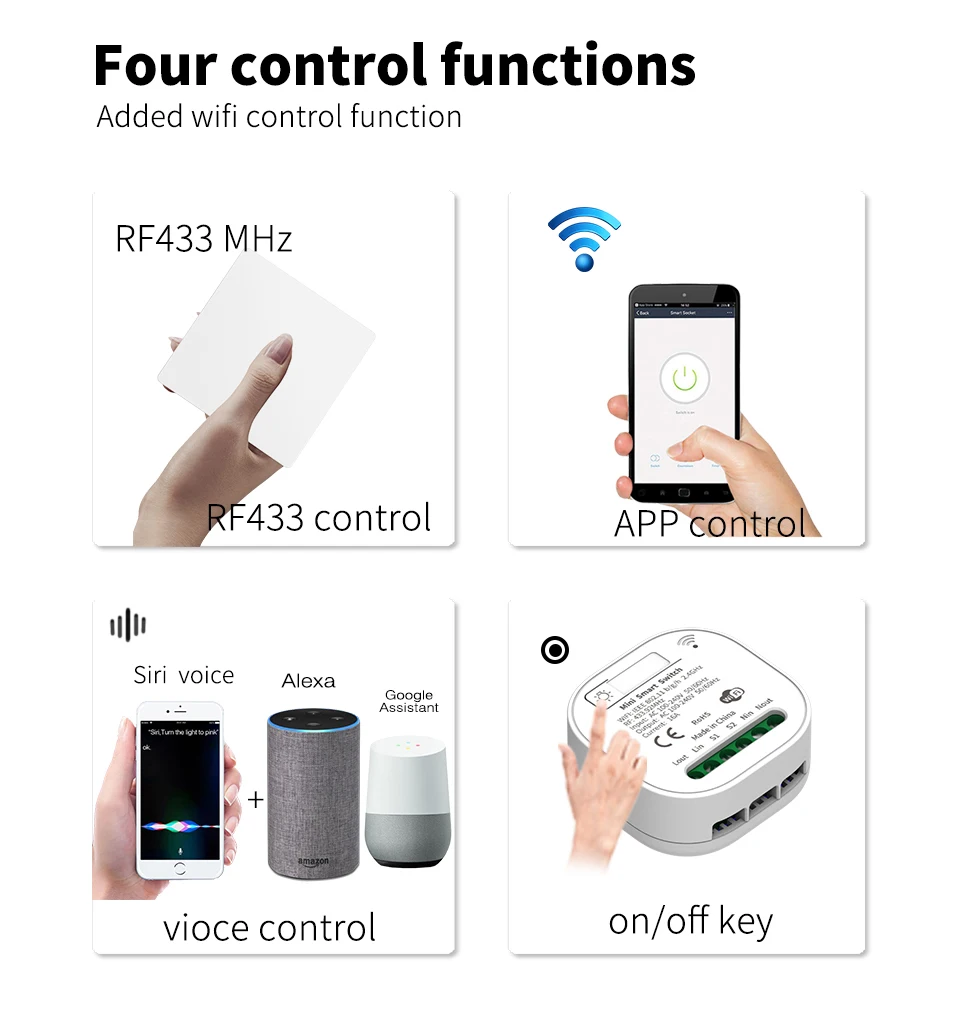 ① Управление RF433②APP Управление③ Голосовое управление④ ВКЛ/ВЫКЛ