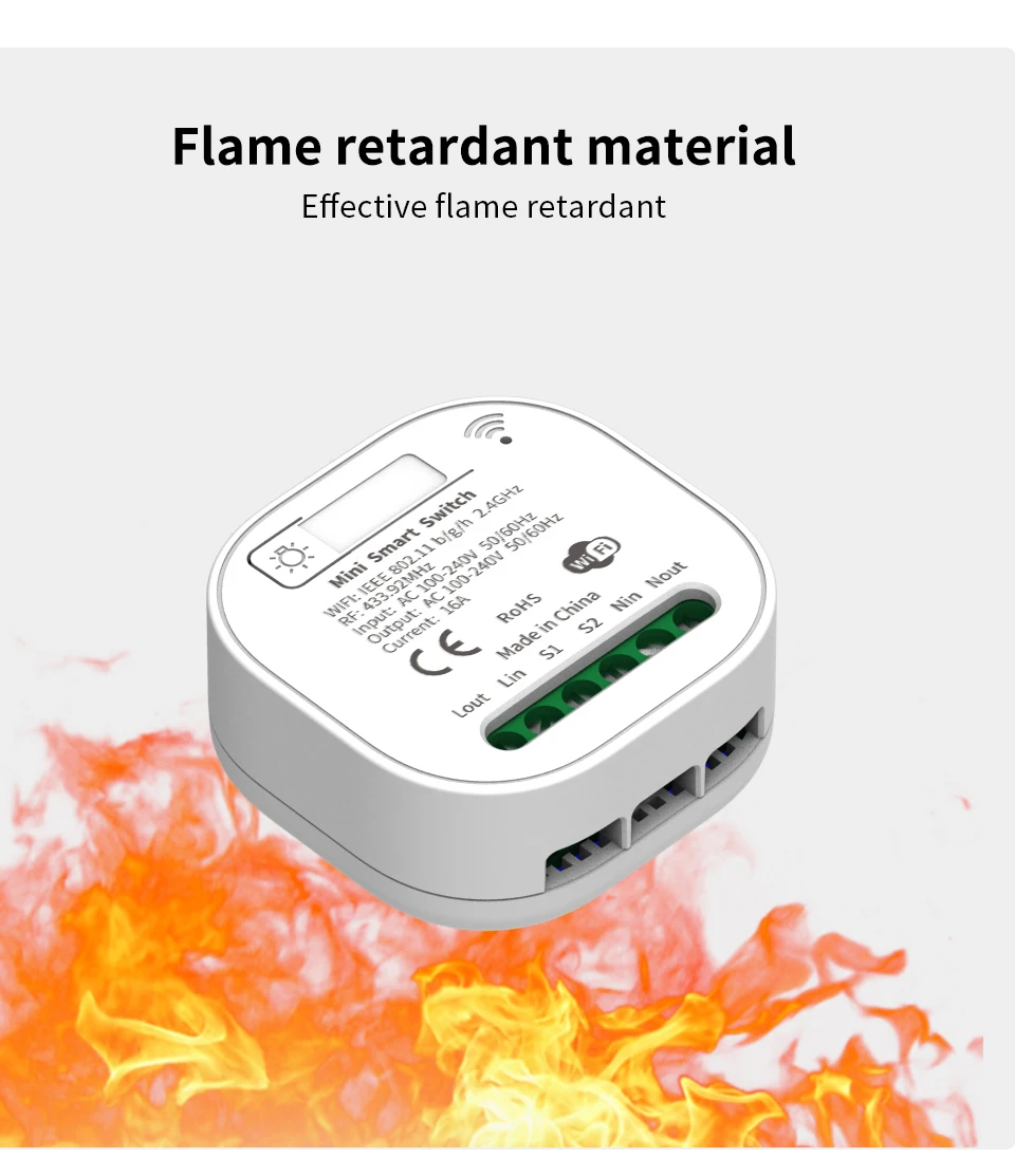 Название: 16A WiFi Smart SwitchРазмер: 49*48*23 ммДвустороннее управление: ПоддержкаНоминальный ток: 16AНоминальное напряжение: 100 В-240 В переменного тока 50/60 ГцНоминальная мощность: 3520 ВтРекомендуемая мощность (безопасность):≤ 2800 ВтМатериал: огнестойкий материалРабочая температура: -20 °C ~ 50 °CБеспроводной стандарт: IEEE 802,11 b/g/nПротокол связи: WiFi 2,4G / RF433.92mhz