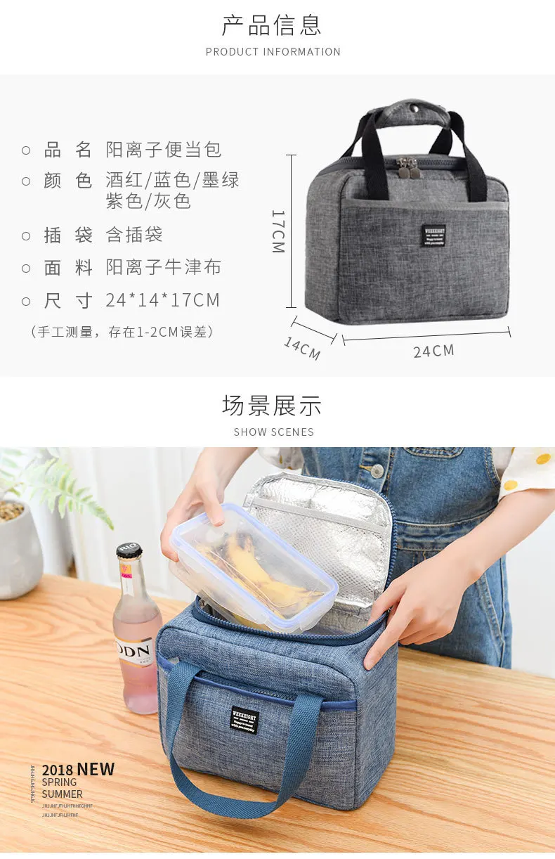 Сумка для ланча для мужчин и женщин, модный серый тоут из ткани Оксфорд, водонепроницаемая сумка на плечо из алюминиевой фольги с изоляцией для пикника